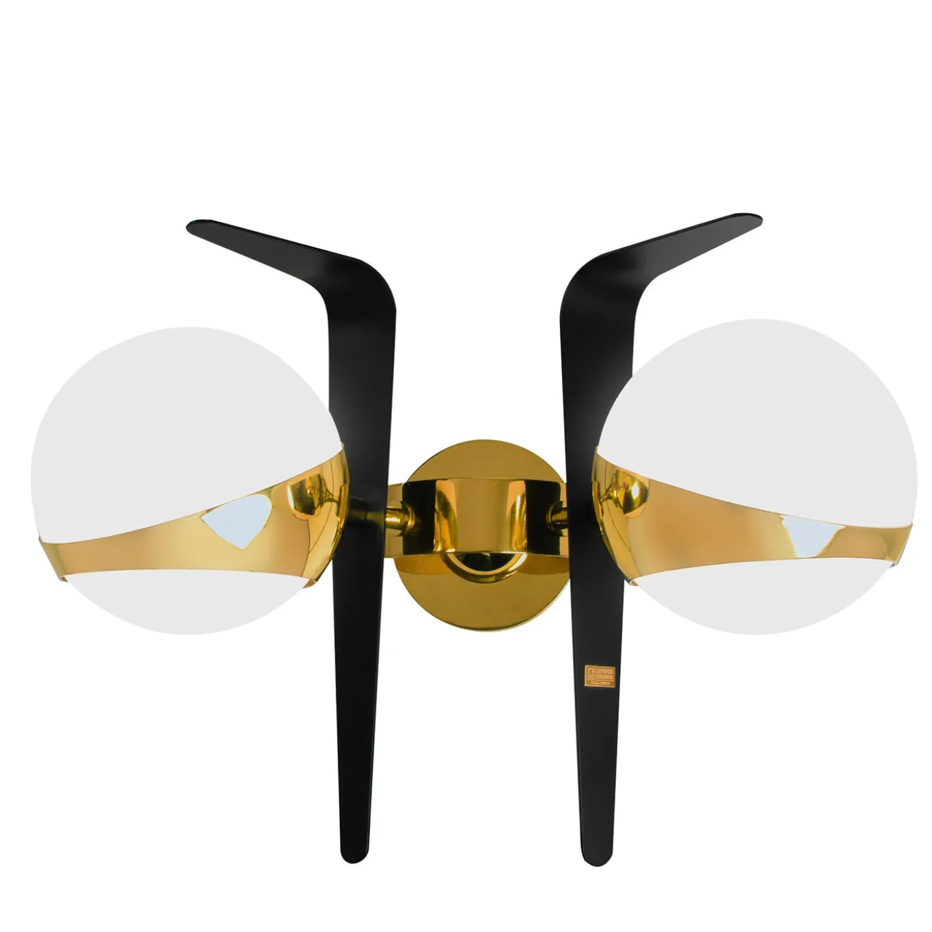 Con un design eccezionale dall’aspetto spaziale, questa lampada da parete sarà un’aggiunta singolare a un interno contemporaneo e raffinato. Realizzata in ottone con l’abbinamento di lacche dorate e nere, presenta due paralumi sferici luminosi. Per ulteriori informazioni sui materiali e sulle opzioni di personalizzazione, consultare il Concierge.