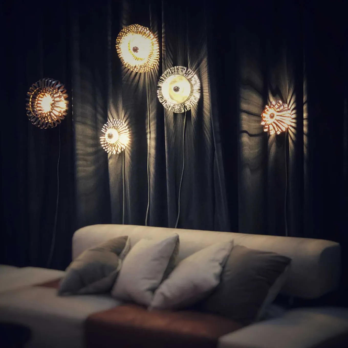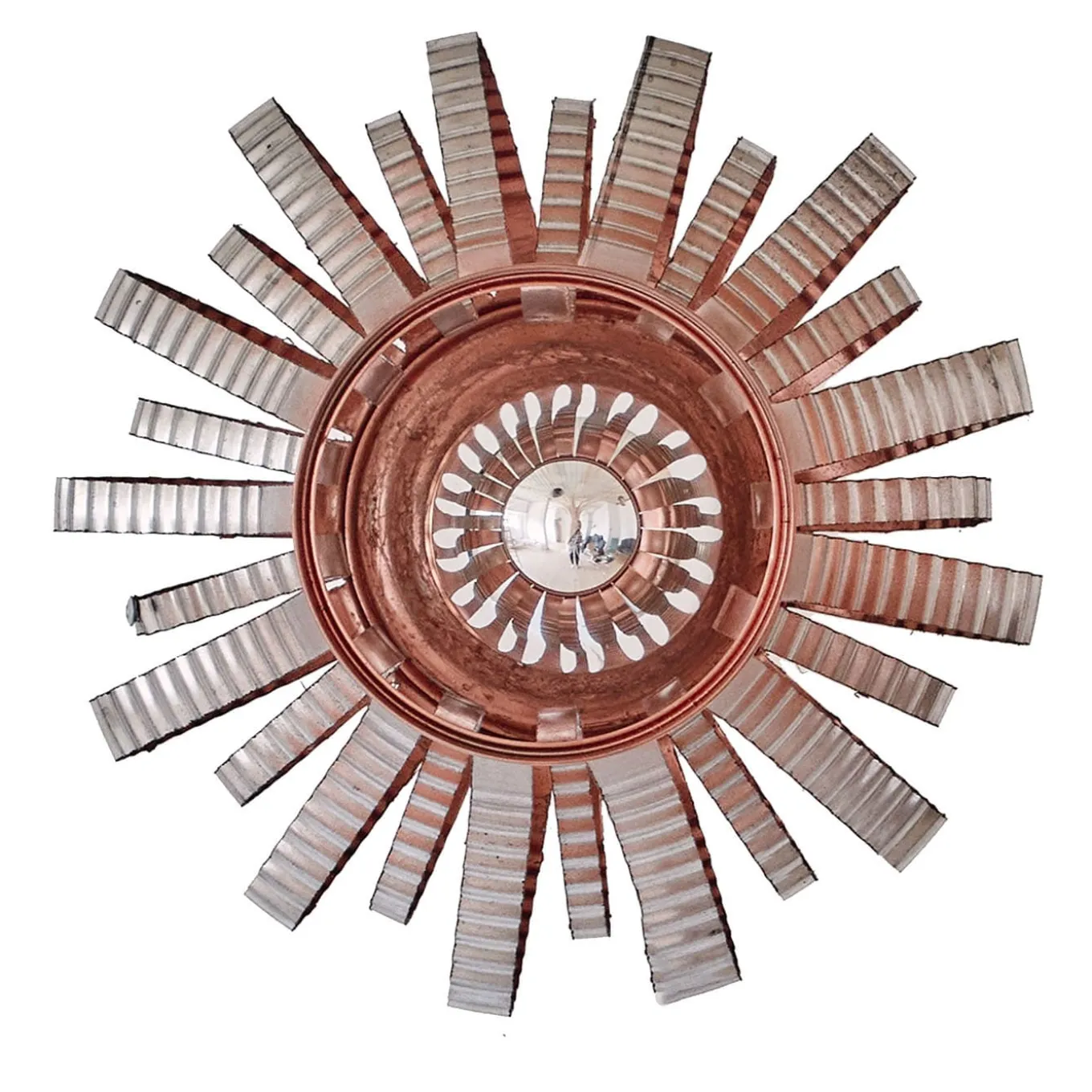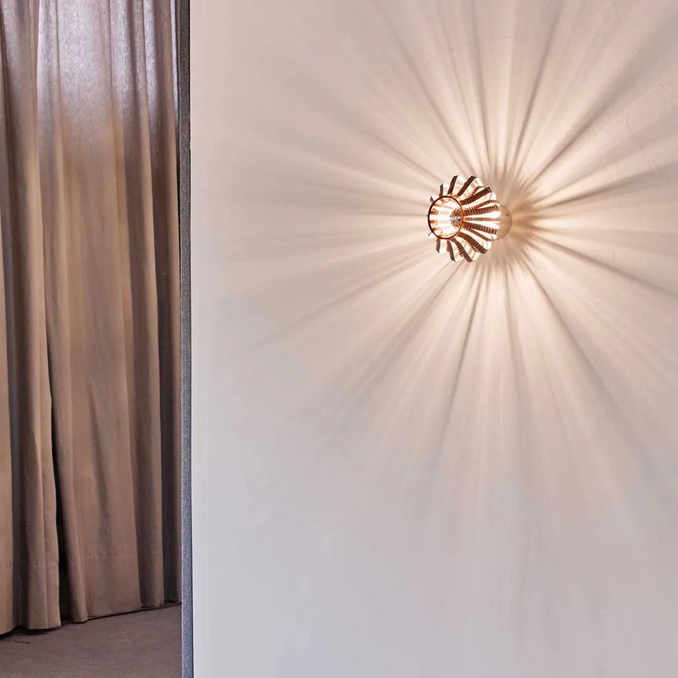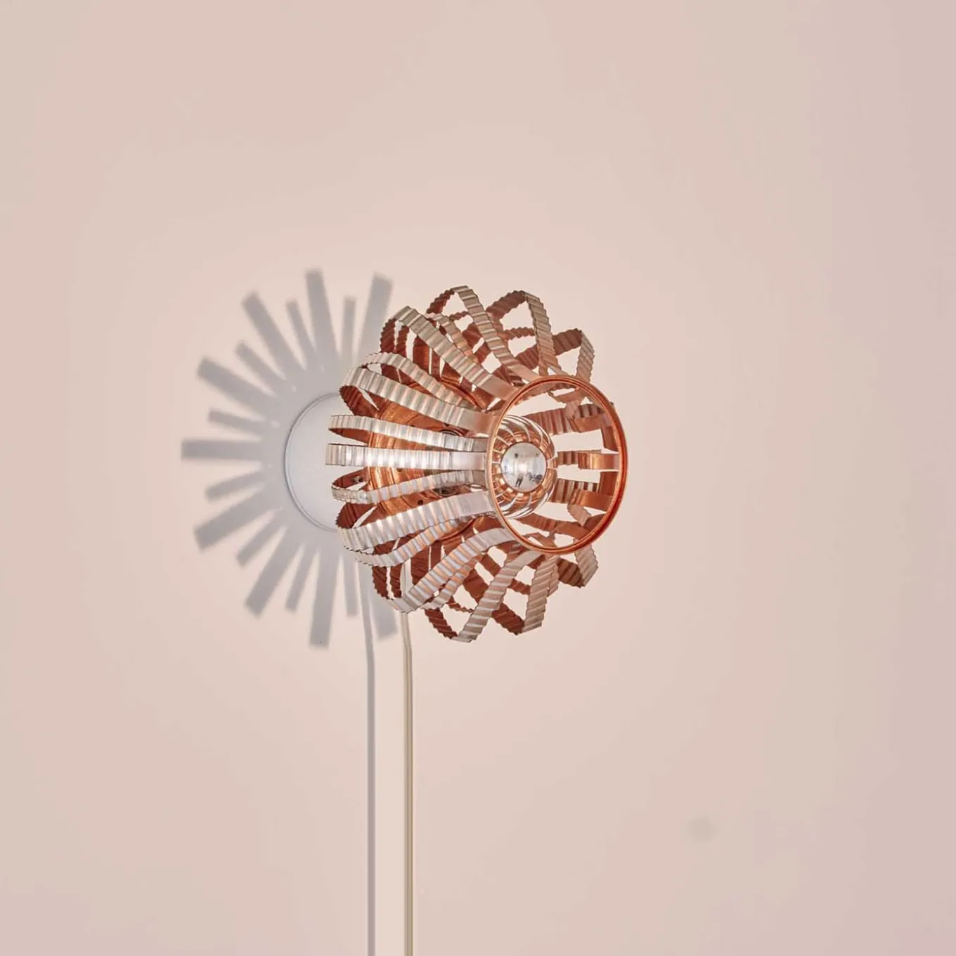Realizzata con oggetti metallici riciclati e riutilizzati come lattine per alimenti e vernice, questa lampada da parete presenta una shade affascinante composta da un esterno argentato e un interno color rame. Tiny è completamente tagliata e assemblata a mano, ogni oggetto è un pezzo artigianale unico. Una dolce esplosione di stelle a motivo decora le superfici. Viene consegnata completa di cavo e lampadina con tonalità calda e ombra argentata.
