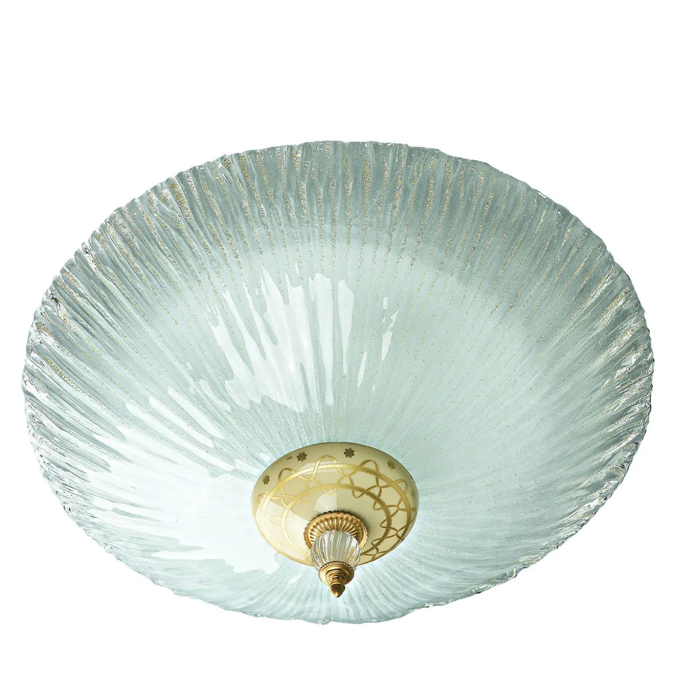 Questa lampada da soffitto di classe della Collezione Elite valorizzerà con discrezione qualsiasi arredamento classico grazie al suo look lussuoso ed evocativo. La luce emessa dalle tre lampadine E27 (max. 60W) viene filtrata attraverso il diffusore in vetro, la cui texture evoca le conchiglie. Delicati componenti in metallo con riflessi dorati affiancano una piccola sfera in vetro, ulteriore elemento decorativo abbinato a un pezzo a cupola in porcellana avorio decorato con dettagli dorati.