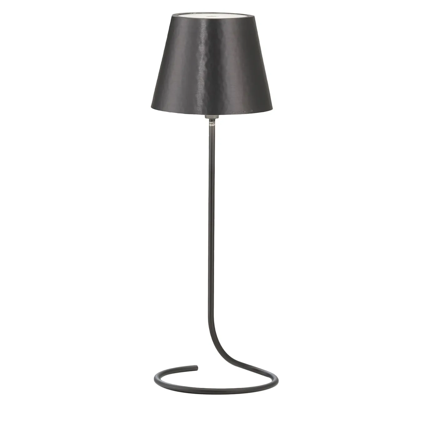 Liberamente spostabile grazie al suo design senza fili, questa lampada da tavolo ricaricabile è una raffinata espressione di estetica minimalista. Realizzata in lega di ottone e placcata in titanio opaco, la struttura comprende un paralume conico martellato e un sottile stelo fluido che costituisce anche la base semicircolare. Nel catalogo Artemest sono disponibili diverse versioni.