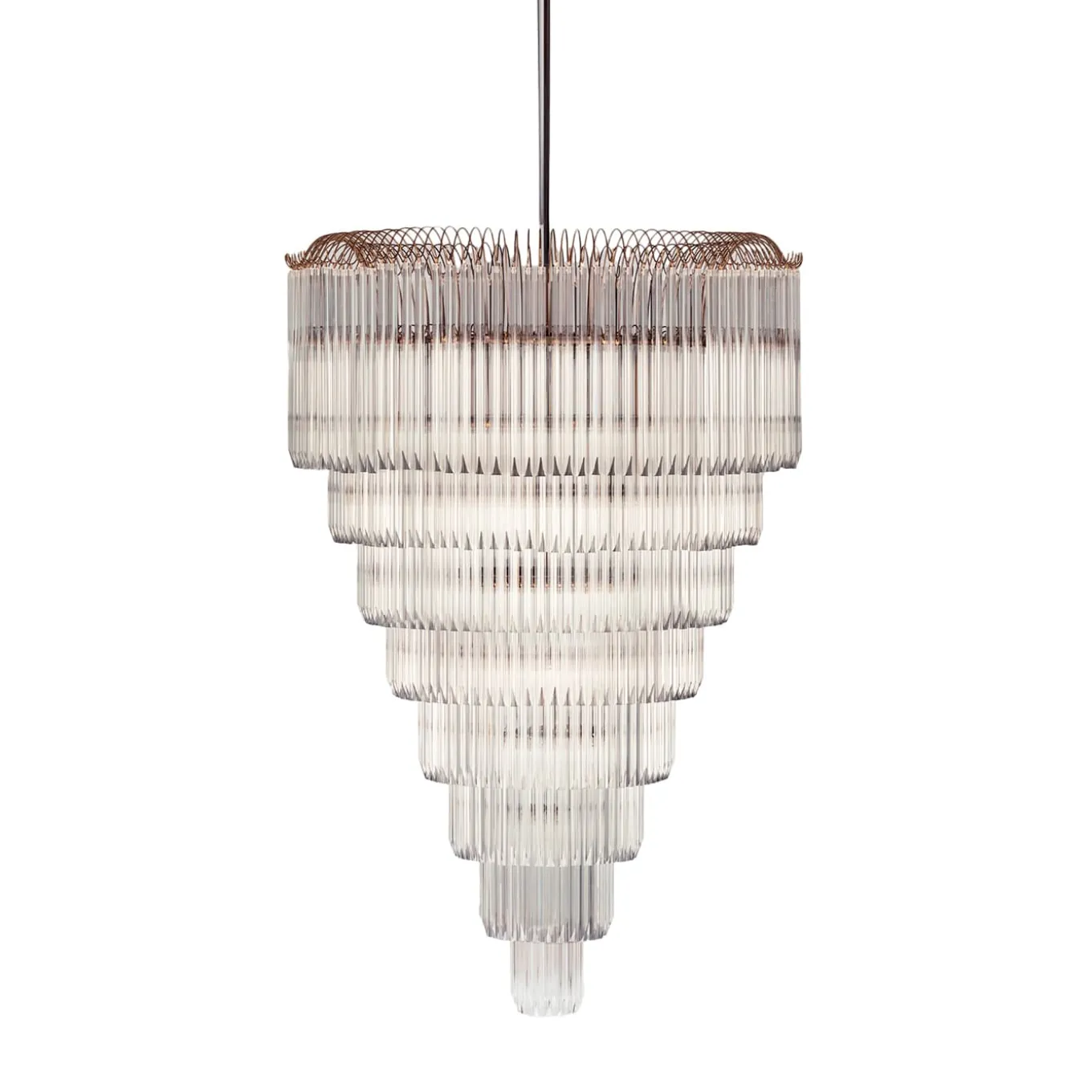 Doge è un lampadario in acciaio inossidabile e cristalli, che mette in mostra eleganza e maestria. Il design a gradini presenta aste di cristallo a cascata, che ricordano i classici lampadari veneziani, creando un effetto visivo di grande impatto. I cristalli di alta qualità riflettono magnificamente la luce, proiettando un caldo bagliore. Con la sua raffinata opulenza e il suo design senza tempo, la collezione Doge è perfetta per interni lussuosi che richiedono raffinatezza e grandezza.