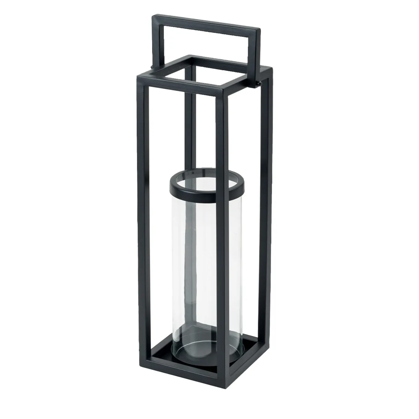 Versione media di un design offerto in altre due opzioni di dimensioni per gruppi poetici, questa lanterna da terra infonde a qualsiasi spazio un’atmosfera rilassata. La struttura in acciaio a taglio geometrico è disponibile in una finitura nera anticata, condivisa anche dal bordo e dalla base del paralume cilindrico in vetro ospitato all’interno. È disponibile anche una variante con maniglia in bambù; per le opzioni di personalizzazione, contattare il Concierge.