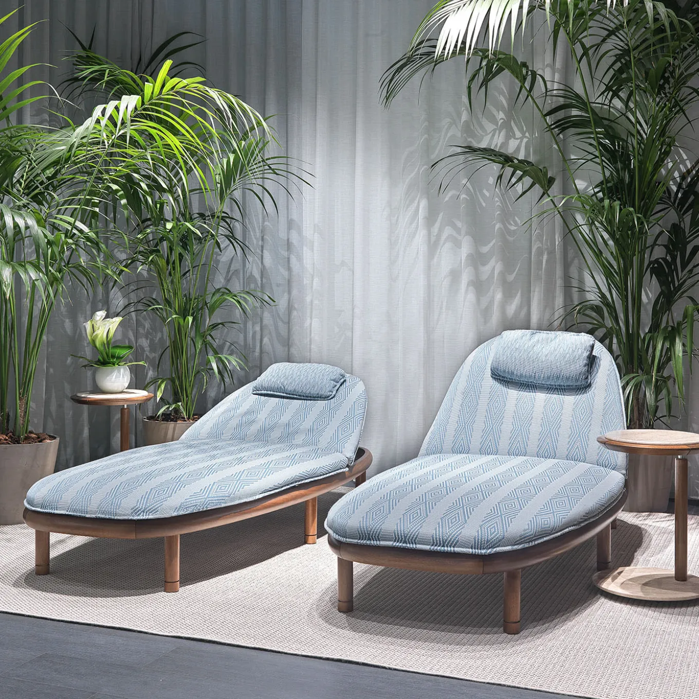 Definito dall’elegante forma ovale e dalla struttura minimalista in legno di Iroko, questo lettino da esterno emana una raffinata semplicità. La finitura chiara mette in risalto le venature naturali del legno, mentre la finitura scura opzionale offre un contrasto drammatico. Rivestito in tessuto PEI Arbonne e con un cuscino in PEI Ascain, unisce materiali durevoli a un comfort lussuoso. Questo lettino si distingue per il suo design senza tempo, che lo rende una scelta sofisticata per qualsiasi ambiente esterno. Per ulteriori dettagli, contattare il Concierge.