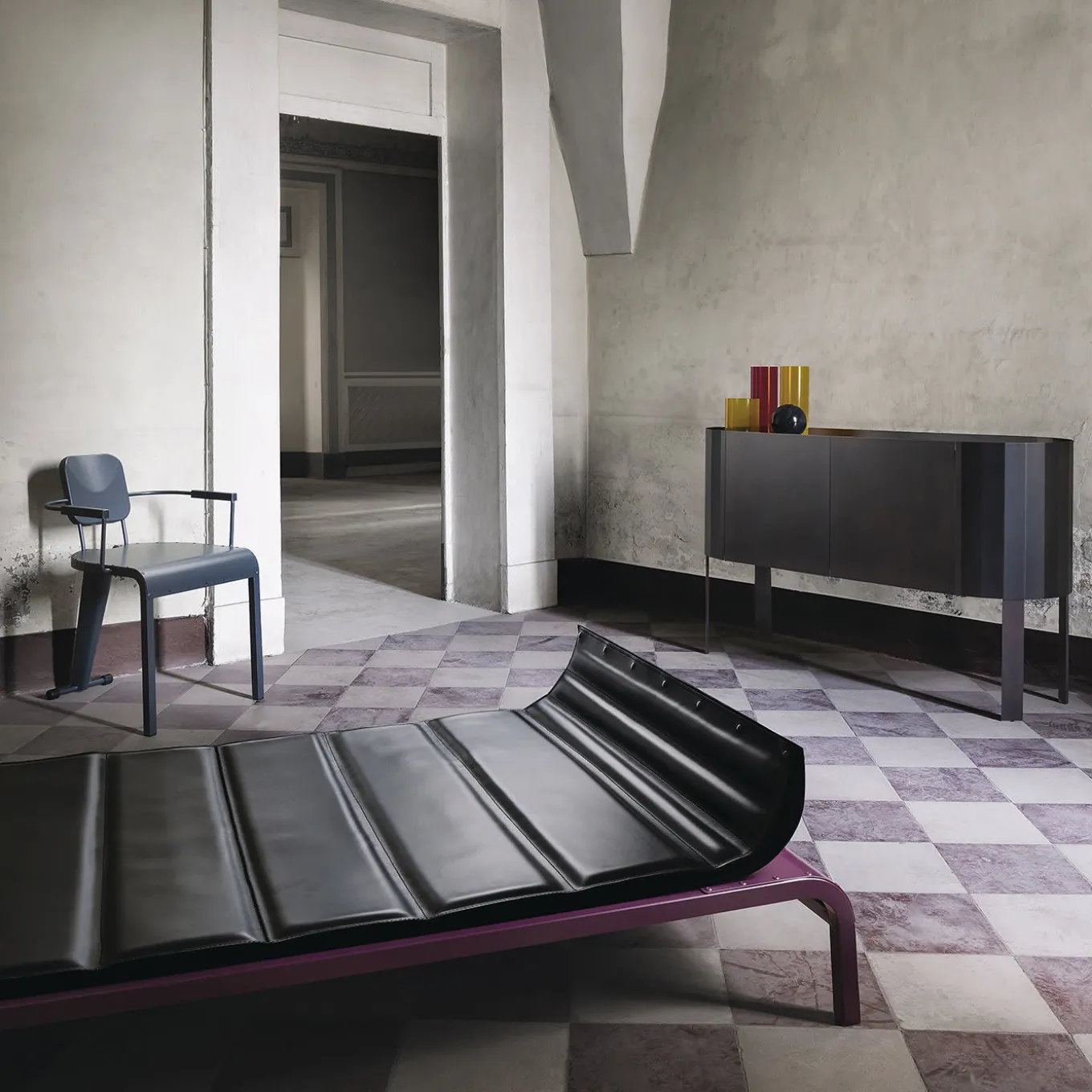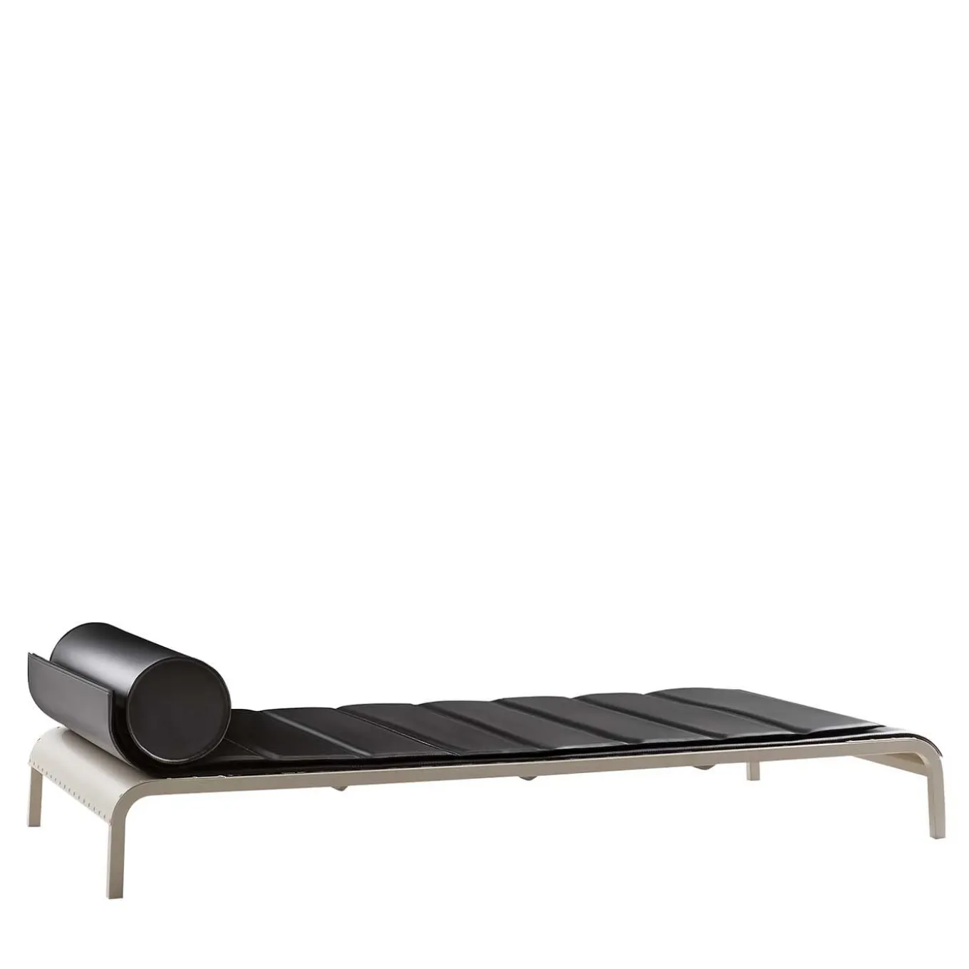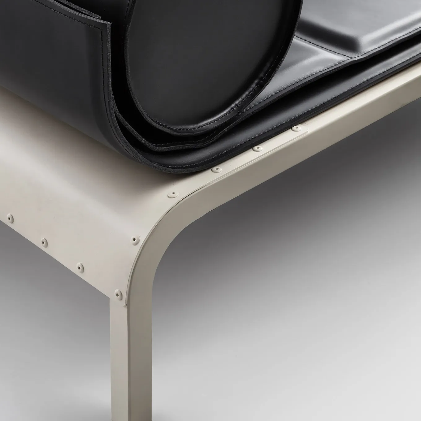 Elegante e contemporanea combinazione di bianco e nero, questo splendido pezzo di arredamento funzionale è un daybed da interno interamente realizzato in tubolare d’acciaio piegato. Dotato di cinghie tecniche per un maggiore comfort, il letto è arredato con un doppio materassino rivestito in pregiata pelle nera e impreziosito da un cuscino imbottito di forma cilindrica. Questo pezzo è personalizzabile, si prega di chiedere al Concierge per i dettagli.
