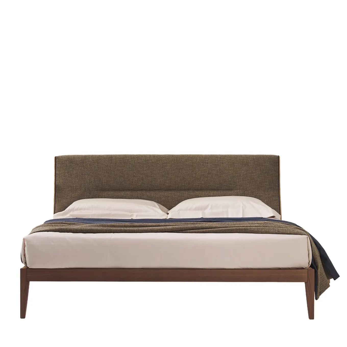 Profili lineari nobilitati da inserti preziosi conferiscono un senso di lusso sobrio a questo letto matrimoniale, un’aggiunta azzeccata alle camere da letto moderne. La pregiata pelle beige aderisce ai lati della struttura, lasciando a vista solo i piedi in legno massiccio e il bordo anteriore. Rivestita in morbido tessuto marrone e riccamente imbottita, la testata è caratterizzata da una silhouette curva. Il giroletto a doghe fisse è incluso.