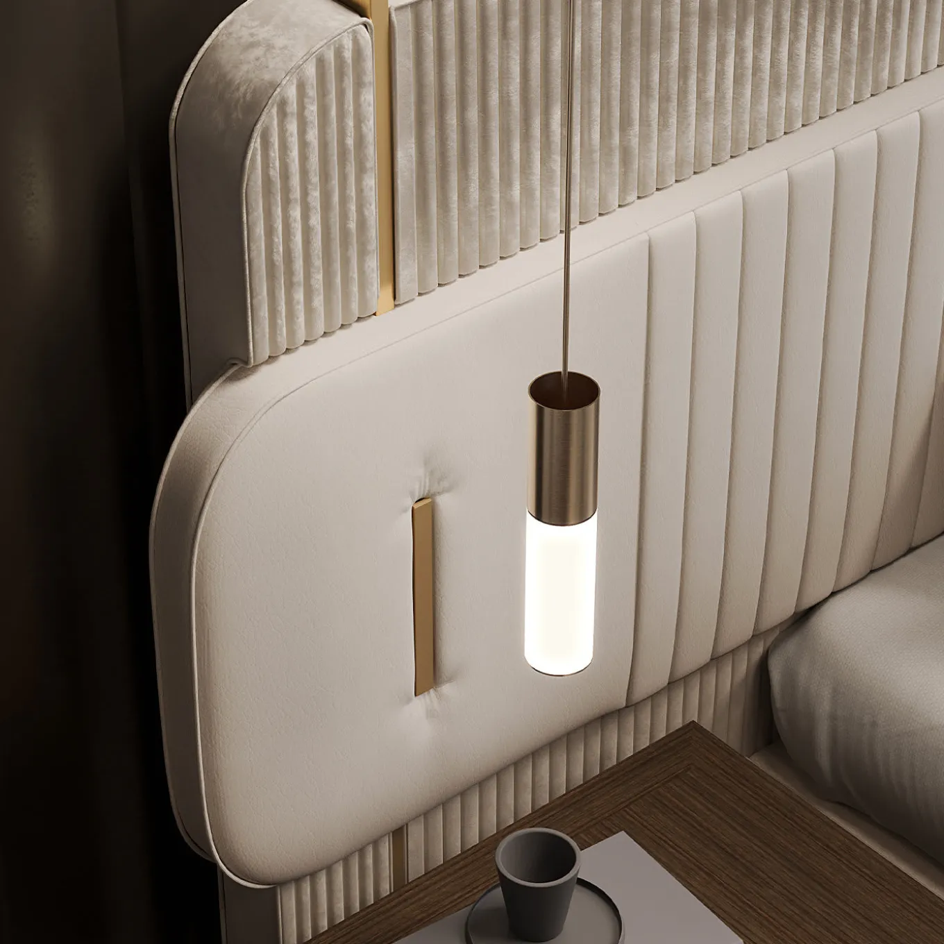 Esclusivo pezzo forte per un interno contemporaneo e raffinato, questo splendido letto combina linee pulite e minimaliste con un tocco di sontuosità. Morbidamente imbottito, la sua struttura in legno è rivestita in pelle bianco crema, impreziosita da inserti in metallo satinato con finitura in ottone sulla testata e da cuciture a tubo di dimensioni diverse che aggiungono un piacevole senso di movimento al pezzo. Personalizzabile per dimensioni, finiture e rivestimenti, chiedete al Concierge per dettagli e opzioni.