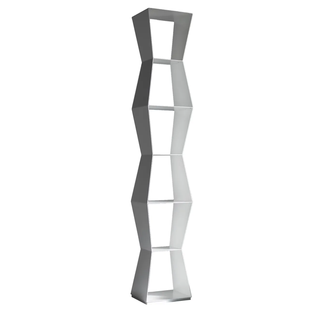 Dinamica e seducente nella sua forma pulita e minimalista composta da sei ripiani, questa libreria autoportante appartiene a una serie di progetti essenziali di ispirazione urbana di Carlo Cumini. Interamente realizzata in alluminio laccato bianco, animerà con discrezione un salotto o uno studio di ispirazione contemporanea.