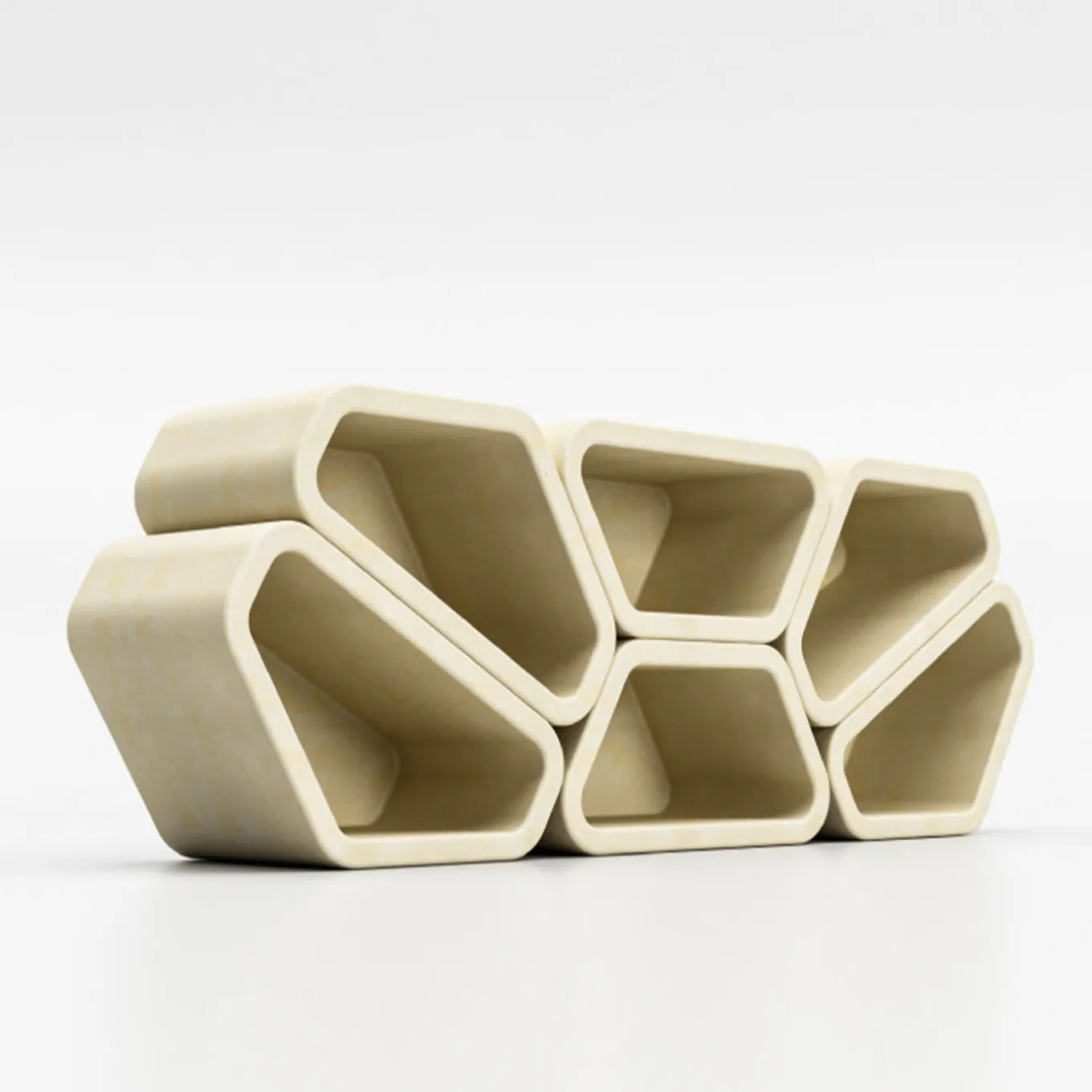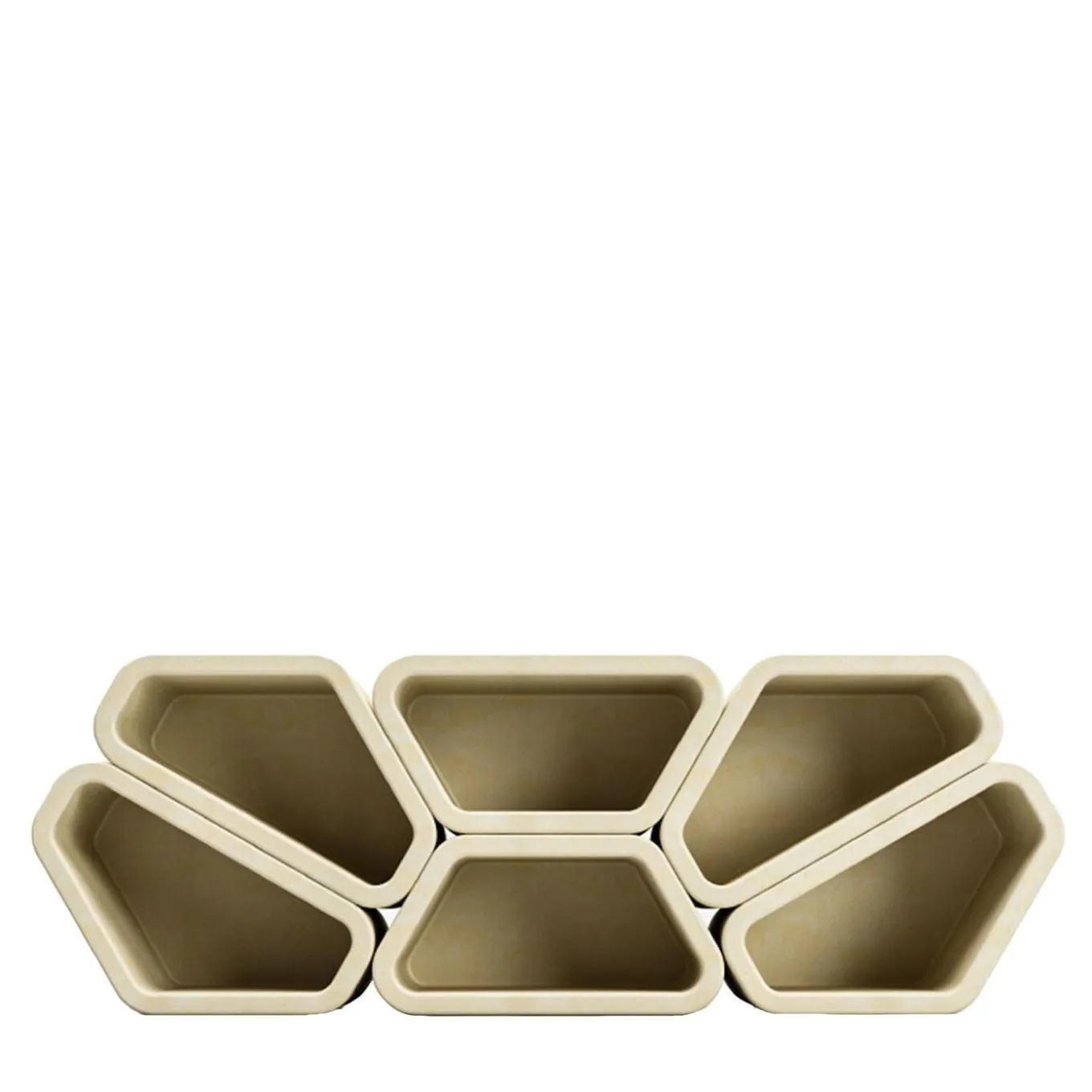 Ispirata in modo giocoso alle pareti rocciose tipiche della campagna salentina, questa libreria modulare è stata concepita come una perfetta sintesi tra arte e funzionalità. La serie di blocchi squadrati di calcare leccese che ne compongono la silhouette può essere montata e smontata a piacere per creare raffinate composizioni personalizzate. Spettacolare e maestoso, il design si integra perfettamente con gli spazi interni ed esterni.