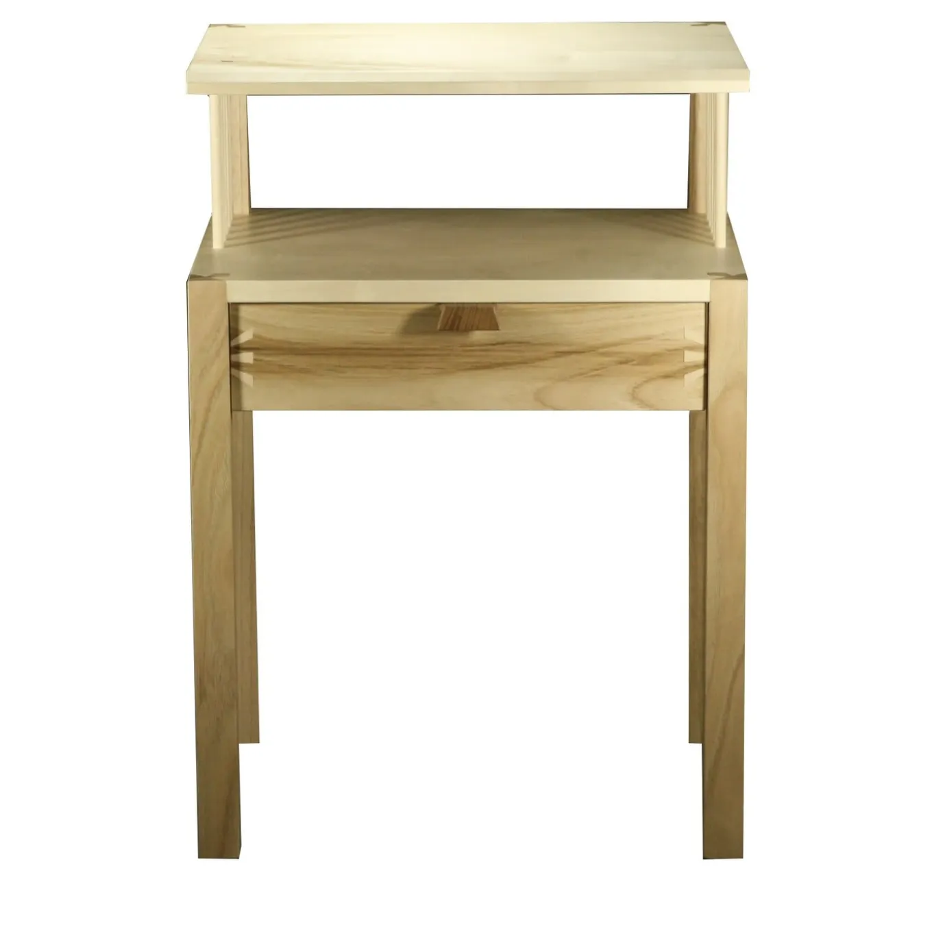 Questo comodino, frutto della maestria artigianale di questo designer e ispirato alle falegnamerie giapponesi, è un esercizio di equilibrio e maestria. La tensione verticale del pezzo è caratterizzata da un cassetto e da un leggero ripiano a scomparti appoggiato sulla parte superiore. L’elemento distintivo del pezzo è la falegnameria a vista e la venatura naturale dei due legni utilizzati, acero e castagno, la cui combinazione crea un contrasto di marrone chiaro e caldo elegante e moderno.