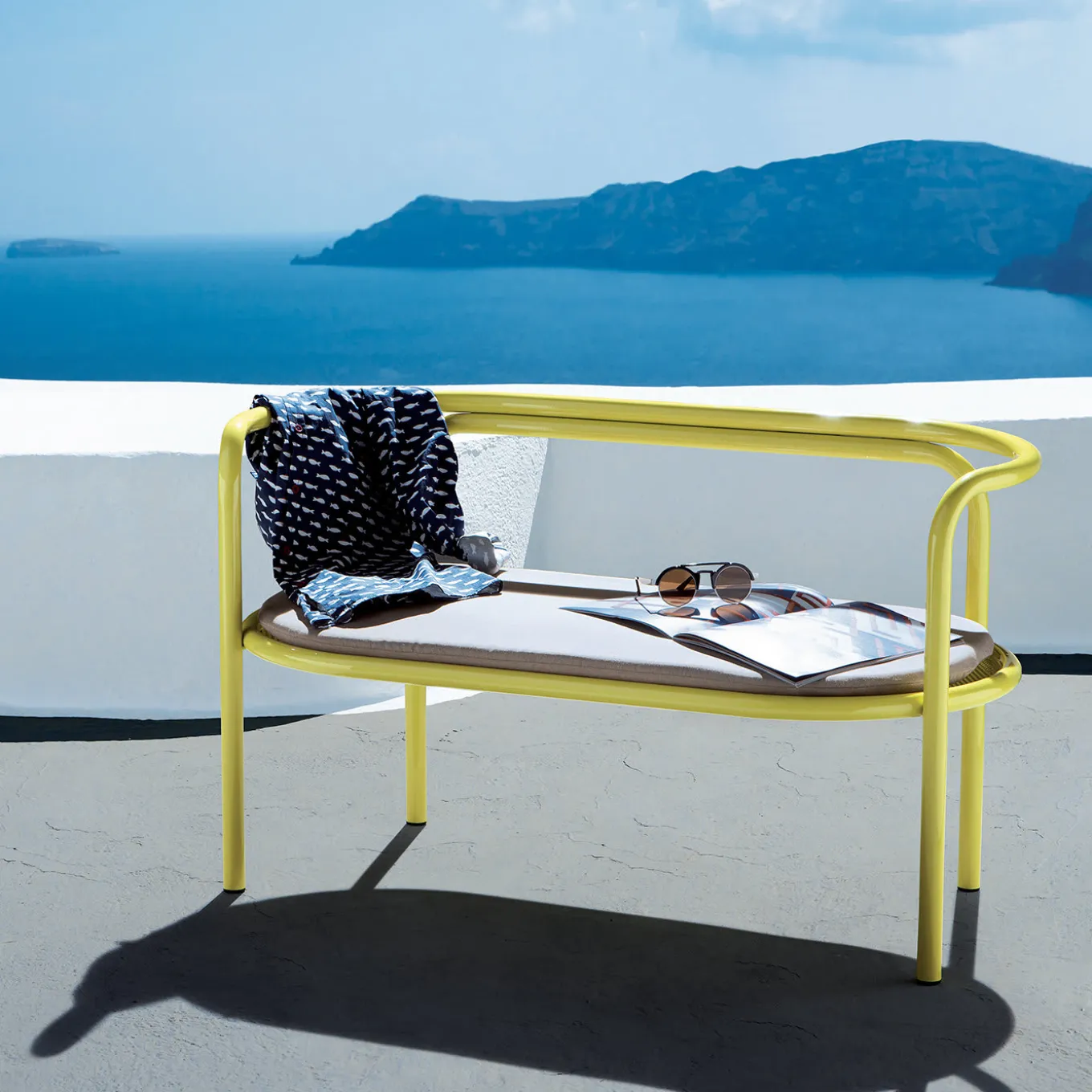 Parte di una collezione completa per esterni disegnata dall’architetto italiano Gae Aulenti nel 1964 e reintrodotta da Exteta nel 2016, questo sorprendente loveseat è caratterizzato da una silhouette semplice impregnata di audaci qualità estetiche cromatiche. La struttura in tubolare d’acciaio giallo brillante si abbina ai gradienti dell’esclusiva opera d’arte stampata sulla seduta rivestita in tessuto. Un design originale e funzionale, interamente realizzato a mano con la massima attenzione ai dettagli, questo divano sarà il protagonista di qualsiasi patio, giardino, veranda o zona piscina. personalizzabile in tutti i tessuti del catalogo Exteta su richiesta. Se i prodotti sono collocati completamente all’esterno, si consiglia l’acquisto di copriletto a prezzo maggiorato. Contattare il Concierge per ulteriori informazioni e opzioni.