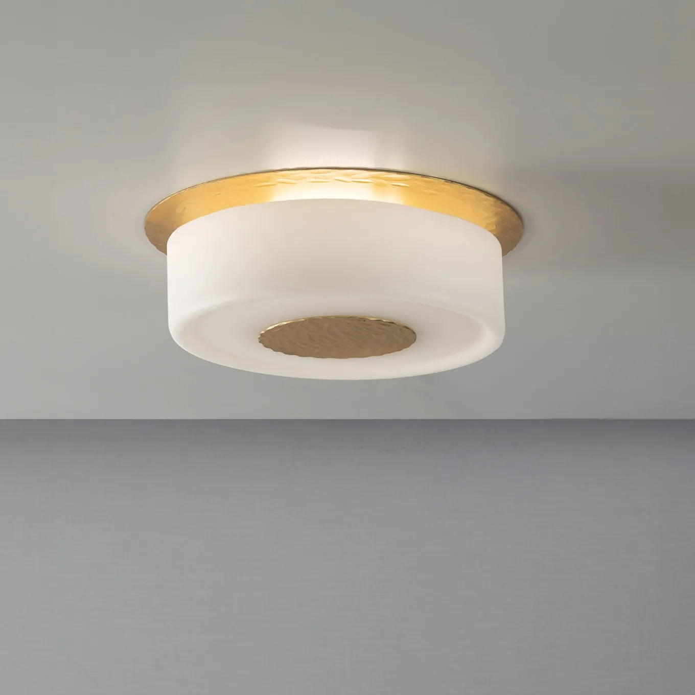 Trasforma la tua casa in una vetrina minimalista e chic con questa lampada a parete senza tempo. La silhouette slanciata presenta una base in metallo martellato con una luce a forma di disco accentuata da un disco in metallo martellato più piccolo, la combinazione della finitura dorata e della finitura in vetro color crema rivela una silhouette seducente. Un’ode all’eleganza senza tempo con le sue finiture preziose e proporzioni armoniose, è idealmente sospesa in corridoi sofisticati e spazi di transizione. Dimmerabile su richiesta.