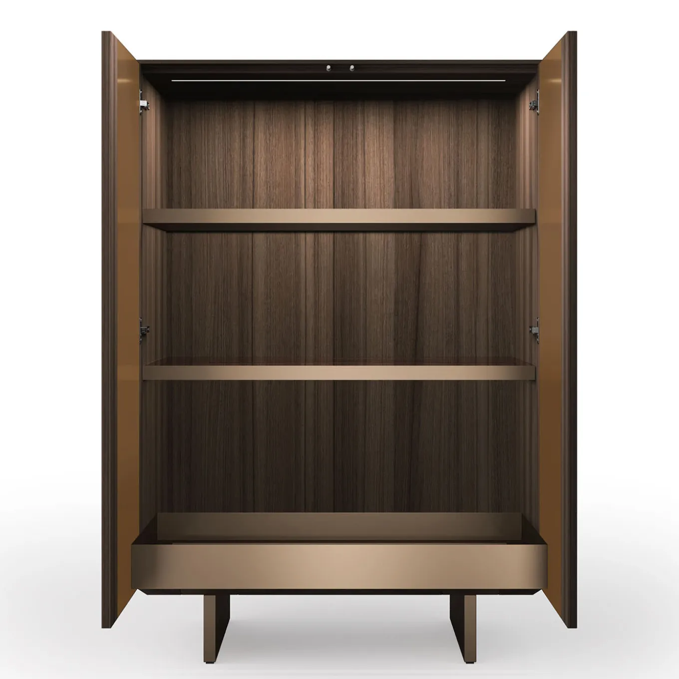 La Madia Solferino è un mobile di design che unisce estetica e funzionalità. Il pannello in metallo liquido bronzo 3D crea un gioco di luci dinamico. La struttura in noce canaletto brunito offre un elegante contrasto. I dettagli dorati aggiungono lusso. I ripiani in vetro e l’illuminazione a LED valorizzano gli oggetti esposti. Ideale per chi cerca un mobile di design raffinato e funzionale.