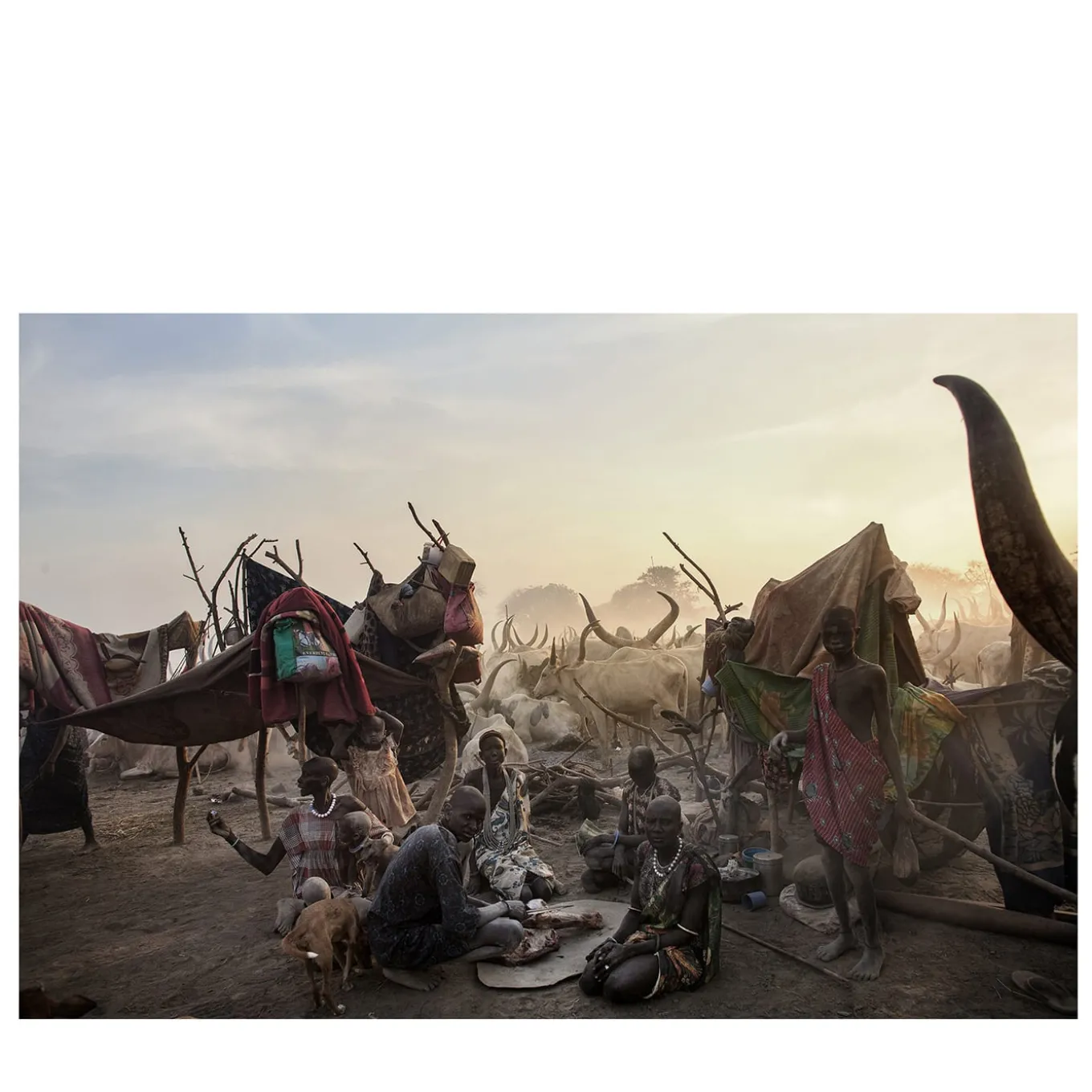 Questa immagine fa parte della serie Maiores Nostri, un progetto sviluppato in Sud Sudan tra il 2014 e il 2022. Le foto sono state pubblicate dai media internazionali. Un uomo con il suo bestiame nel campo vicino a Yirol, febbraio 2014. In un Paese dove milioni di persone hanno bisogno di assistenza umanitaria per sopravvivere, i campi di bestiame rappresentano un’importante realtà economica. L’opera è disponibile in edizione limitata in due formati, stampata su carta fine art d’archivio Epson Hot Press Bright 310gsm, firmata e certificata.