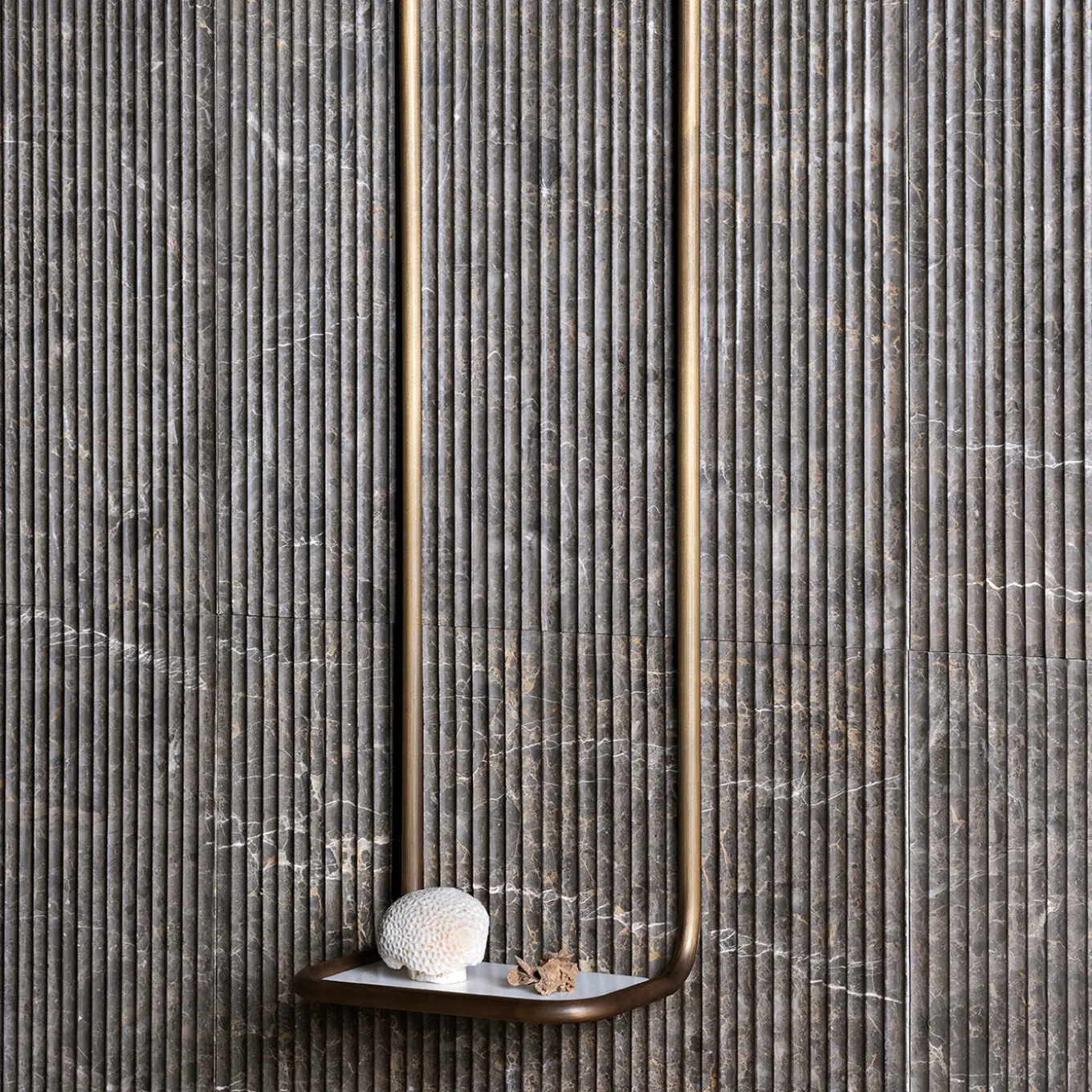 La mensola Oscar presenta una raffinata struttura tubolare in ottone con un diametro costante di 16 mm, elegantemente curvata per formare superfici verticali. Il suo vassoio in marmo offre una piattaforma sofisticata ideale per riporre i prodotti di bellezza o oggetti personali. Progettata con linee geometriche elementari, questa mensola si sposa perfettamente con i lavabi freestanding, offrendo sia un’accessibilità pratica che un raffinato senso estetico.
