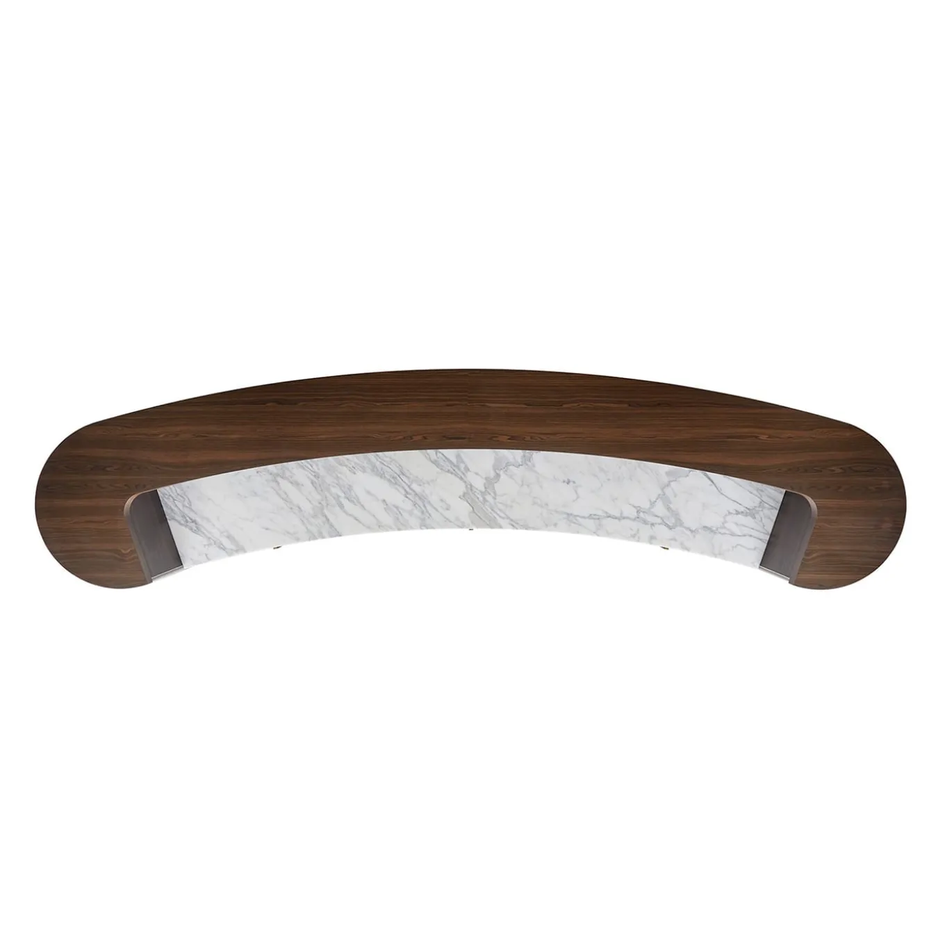 Realizzato con una meticolosa attenzione ai dettagli, questo mobile bar è una straordinaria fusione di forma e funzione. La sua struttura, realizzata in impiallacciatura di noce canaletto laccata opaca, presenta ricche tonalità di marrone e nero, completate da una base in metallo bronzato. Il piano presenta una combinazione di legno e marmo di Carrara che aggiunge un tocco di lusso. Completo di tre spaziosi cassetti con chiusura ammortizzata rivestiti in legno chiaro. Gli accenti in pelle chiara trapuntata del mobile conferiscono un’aria di raffinatezza.
