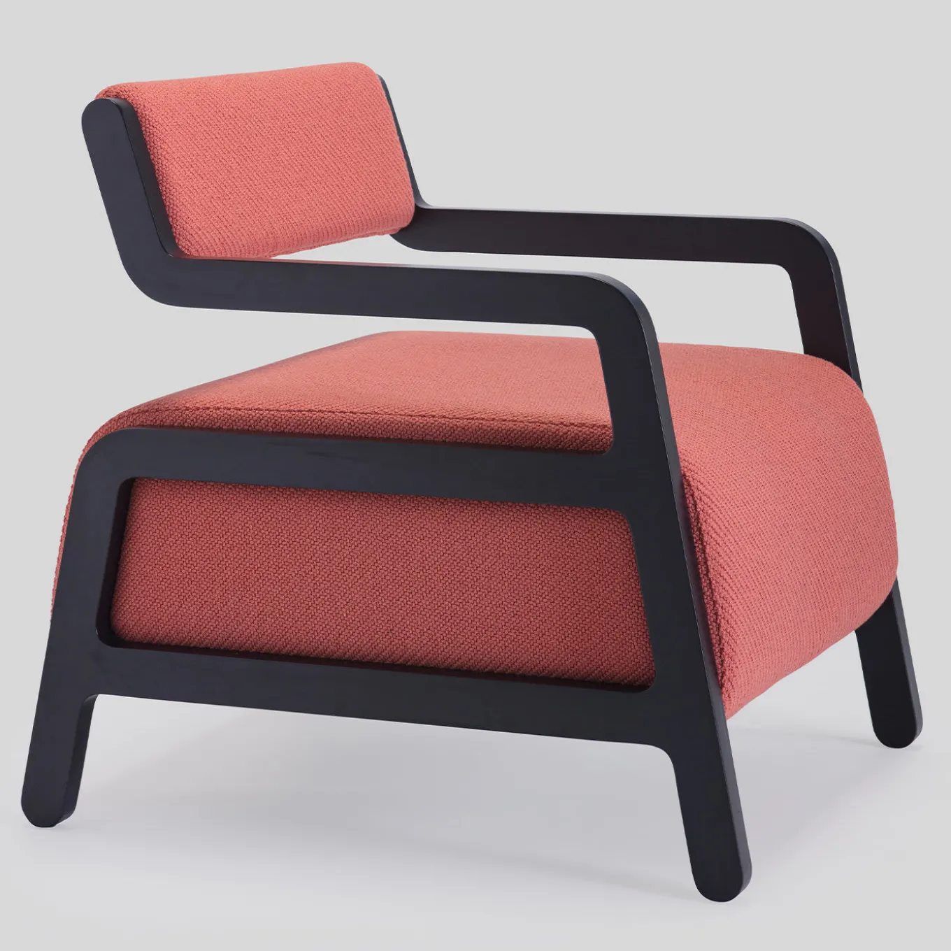 Un pezzo di design superlativo, magistralmente realizzato con materiali raffinati, questa poltrona è una rivisitazione contemporanea di un design classico. Poggiata su una struttura geometrica di grande effetto in legno massello di faggio laccato nero, presenta un sottile schienale imbottito che si abbina e contrasta con la spessa e capiente seduta imbottita. Contraddistinta da un tessuto rosso, è disponibile in altri rivestimenti in tessuto o pelle; per maggiori dettagli, rivolgersi al Concierge.