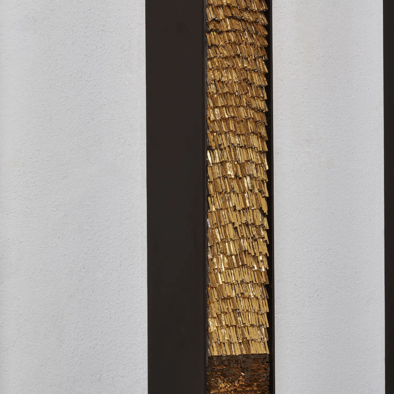 Un set di tre splendidi pezzi realizzati in pasta di vetro con foglia d’oro, ossido colorante e malta, incastonati su legno e ferro multistrato. Ogni pezzo presenta una dimensione diversa: Pezzo #1 (10 x 10 x 236 cm), Pezzo #2 (10 x 10 x 158 cm) e Pezzo #3 (10 x 10 x 80 cm). Questa collezione accattivante fonde materiali raffinati con l’espressione artistica, rendendola un’aggiunta perfetta a qualsiasi spazio o collezione contemporanea.