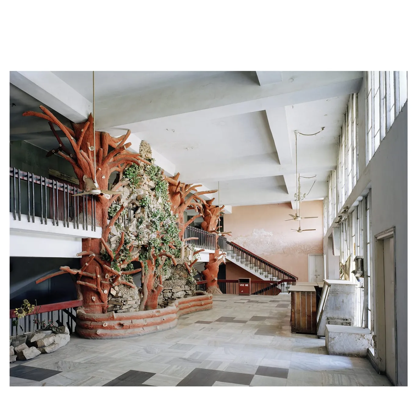 Questa fotografia è tratta da un progetto a lungo termine su una comunità Sikh che vive vicino alla città natale dell’artista. Nel 2014 ha avuto l’opportunità di seguire un gruppo di persone indiane nel loro percorso di ritorno a casa, nel Punjab. Nella stampa si vede il Foyer di un cinema nella città di Chandigarh, capitale della regione e nota anche perché progettata da Le Corbusier.