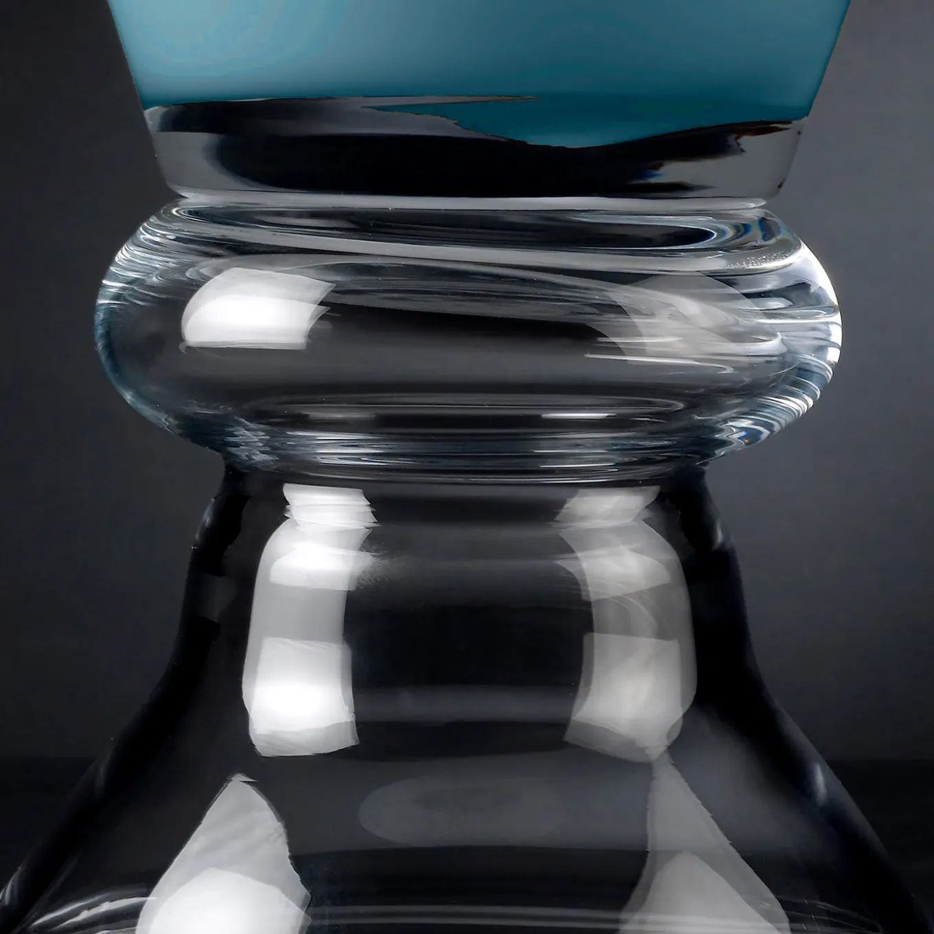 Un superbo gioco di linee pulite ed eleganti e di tonalità delicate e lucide, questo vaso fa parte di una serie versatile e senza tempo, adatta ad arredamenti moderni o classici. Realizzato magistralmente a mano da esperti artigiani, presenta una base rotonda in vetro trasparente che sostiene una sommità blu a forma di cono.