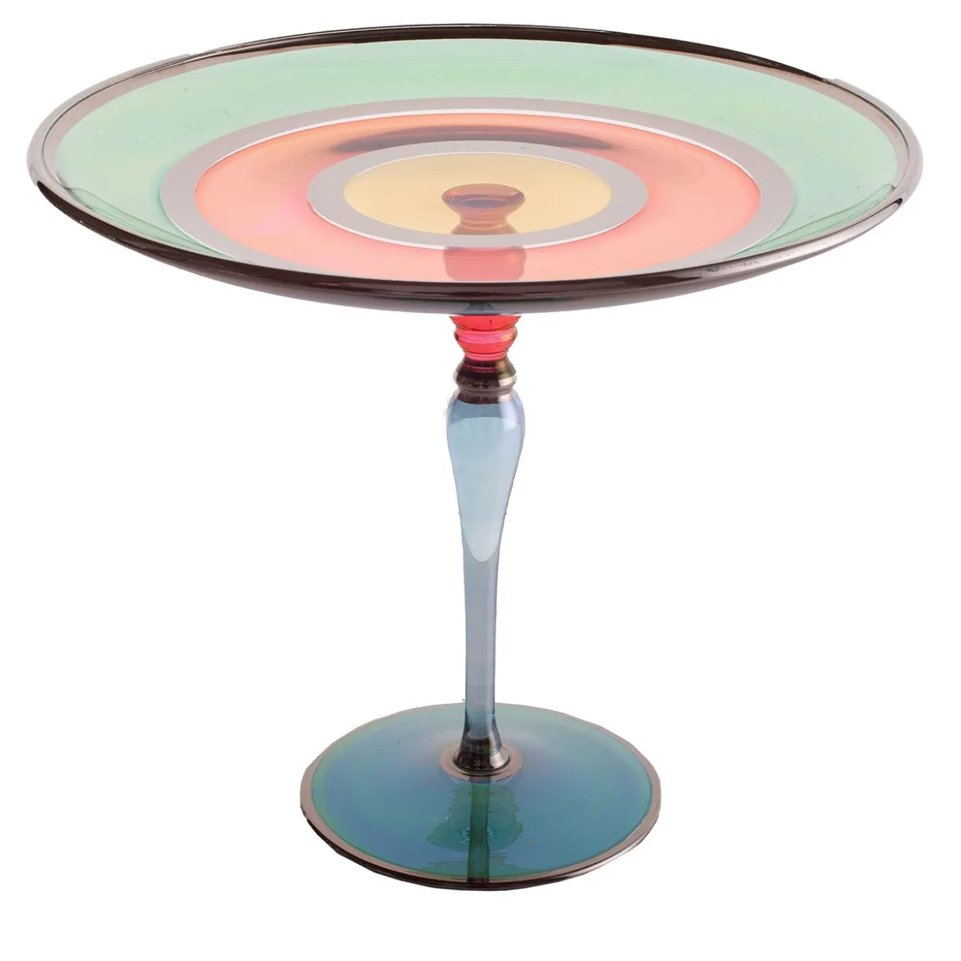 Sublime per l’esposizione di torte o come pezzo a sé stante, questa alzata per dolci in vetro è un pezzo grazioso in cui le aree di diverso colore segnate da anelli di platino rivelano la sua ispirazione olimpica. I valori di solidarietà e bellezza in cui credeva De Coubertin sono qui riflessi in splendidi giochi di colori e trasparenze. È un omaggio ai Giochi Olimpici Invernali di Milano del 2026.