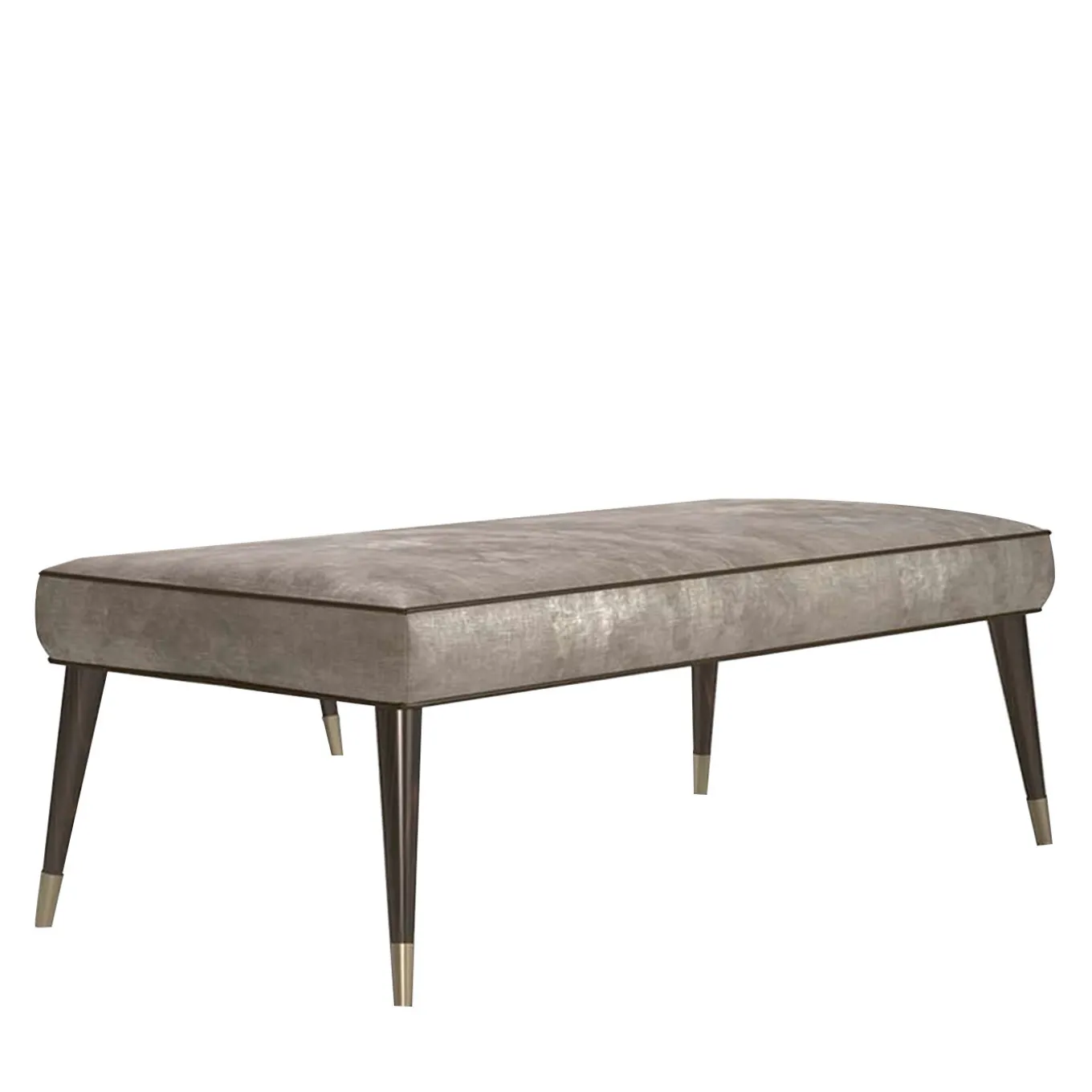 Un pezzo d’accento chic che si inserisce armoniosamente in qualsiasi ambiente, questa panca trasmette un senso di eleganza senza tempo. Sapientemente bilanciato tra design classico e moderno, questo pezzo è piacevole alla vista e al tatto grazie alla sua seduta imbottita e rivestita in morbido tessuto di velluto color tortora chiaro con profili marroni a contrasto. Le gambe coniche e svasate sono realizzate in legno ebanizzato e sono arricchite da ghiere in metallo bronzato. Compagna ideale del divano Giglio, questa panca diventa una superficie funzionale per esporre vassoi decorativi con piante, fiori o candele. Cuscini non inclusi.