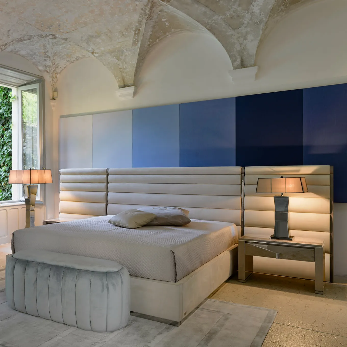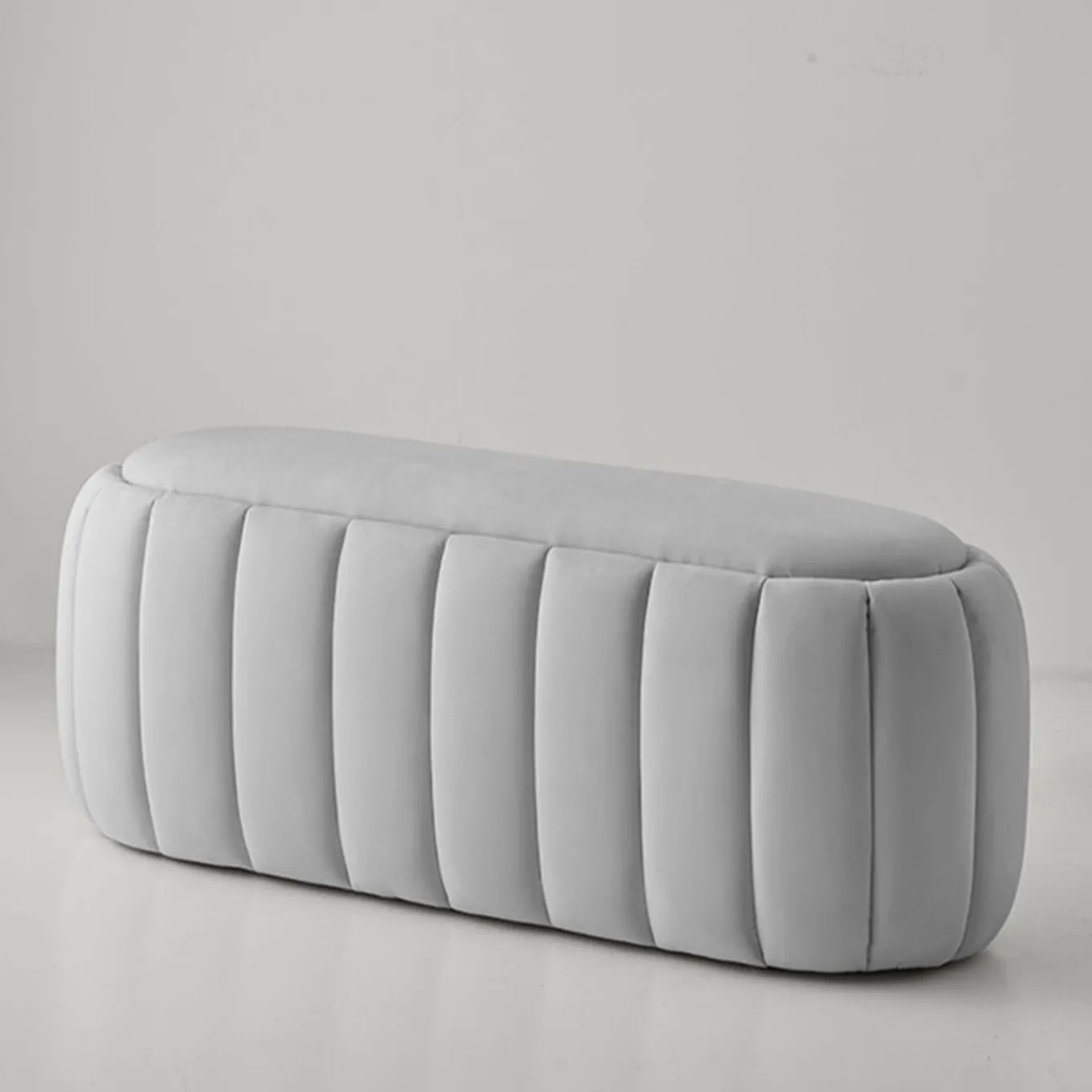 La panca è completamente rivestita in tessuto microfibra ‘Econabuk Bretone’ idrorepellente e lavabile. L’elegante panca ha una particolare forma arrotondata che si adatta a qualsiasi tipo di ambiente della casa. È molto robusta e può sostenere pesi elevati. Piccoli piedini in gomma sul fondo.