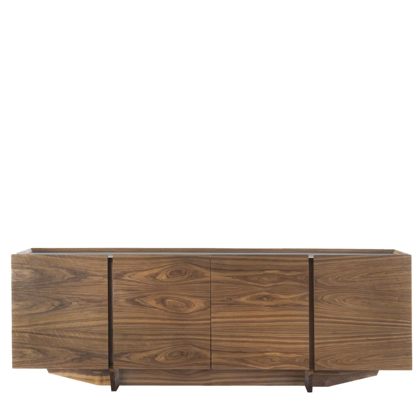 Soluzione di contenimento caratterizzata da un’ipnotizzante cornice in noce annodato, questa credenza è un’ottima soluzione per completare raffinati arredi moderni. Il suo aspetto singolare, con le sue sfumature imprevedibili e i suoi tracciati naturali, viene esaltato dall’olio, una finitura che si estende al piano in noce incassato. Il taglio geometrico della base ravviva il design.