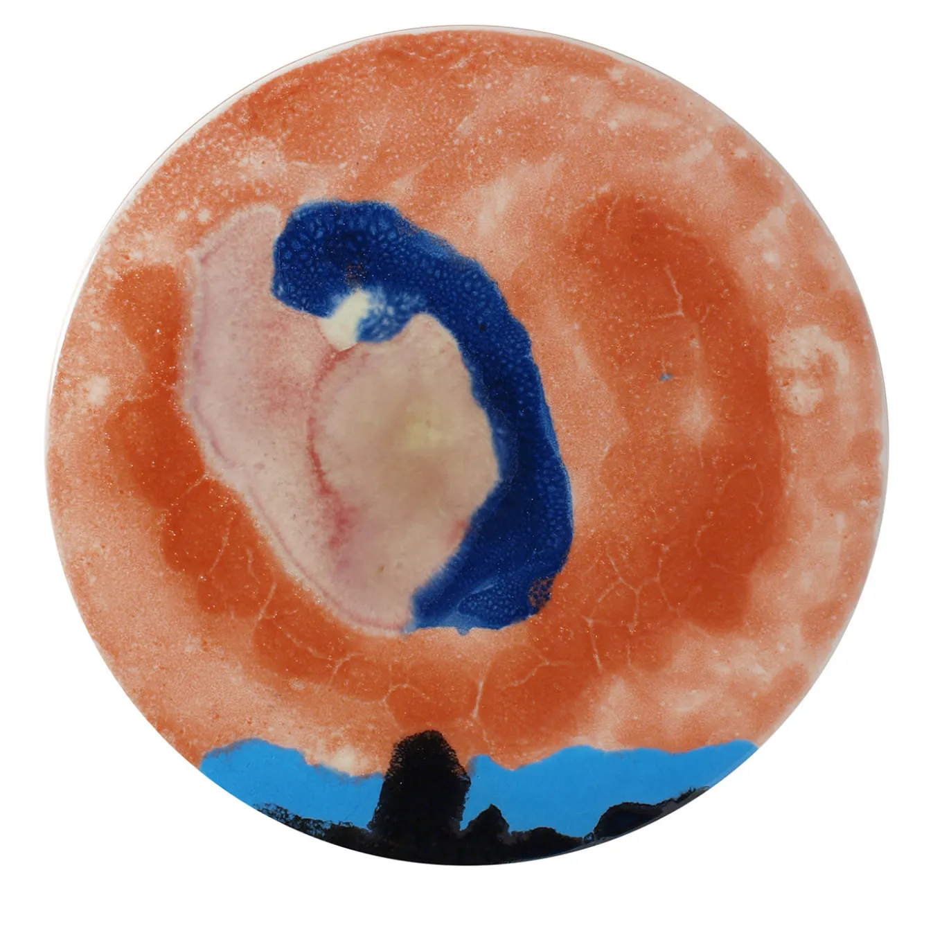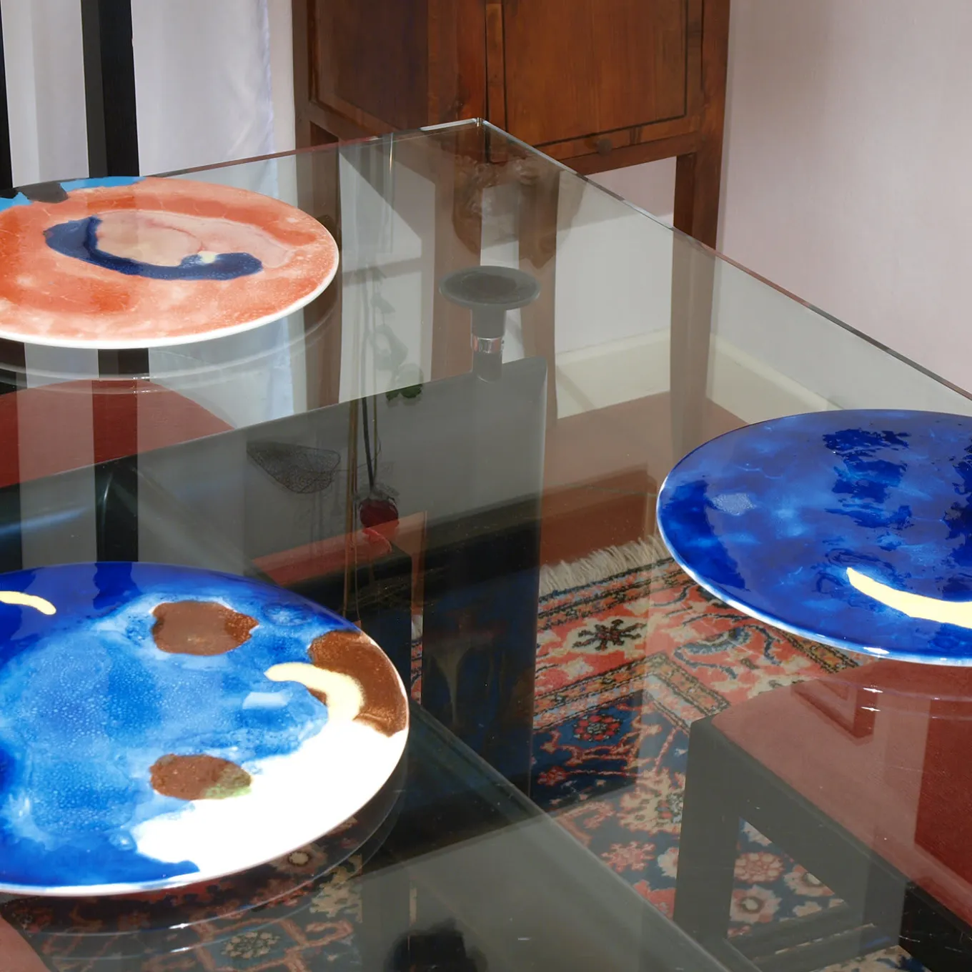 Impregnato di fascino artistico, questo piatto da portata rotondo realizzato a mano con le migliori maioliche di Faenza appartiene alla collezione “Ceramica in Tavola”. La vibrante tavolozza di colori raffigura un paesaggio urbano futuristico sullo sfondo di un cielo in fiamme che sta per inghiottire gli ultimi frammenti di cielo azzurro. Oggetto d’arte puramente decorativo, questo pezzo unico può essere abbinato ad altri della stessa serie per ottenere un look coeso e ponderato.