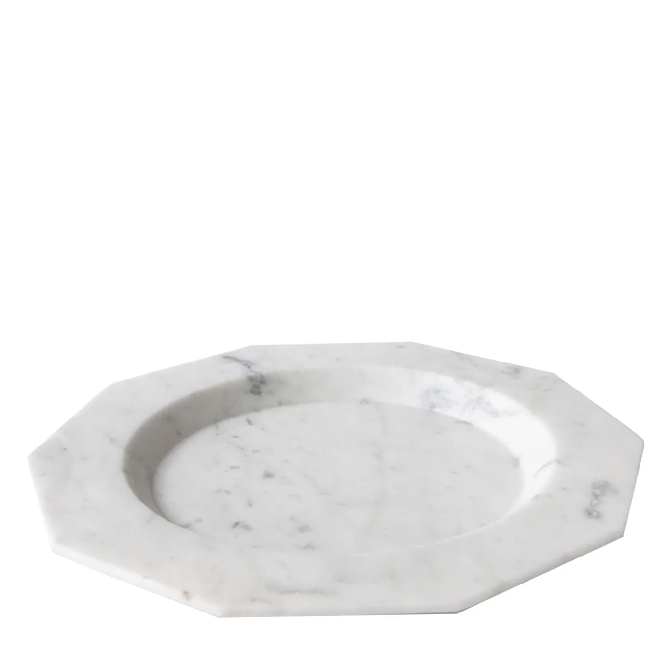 Piatto da portata in marmo bianco di Carrara. Ogni pezzo è in qualche modo unico (ogni blocco di marmo è diverso per venature e sfumature) e realizzato a mano da artigiani italiani specializzati da generazioni nella lavorazione del marmo. Lievi variazioni di forma, colore e dimensione sono da considerarsi garanzia di una creazione artigianale. È importante non usare limone o aceto su di esso, pulire solo con acqua e sapone naturale (come il sapone di Marsiglia), non metterlo in lavastoviglie.
