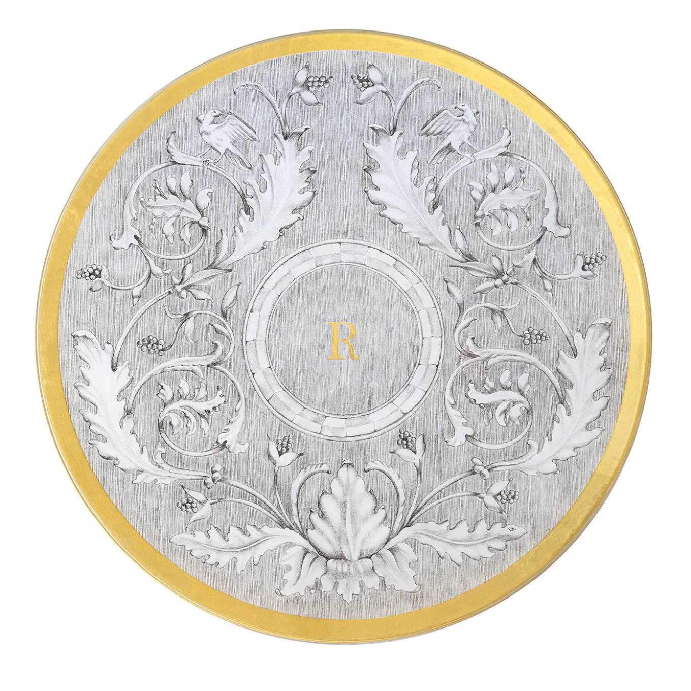 Il sottopiatto Miracoli, appartenente alla collezione Veneziana, trae ispirazione da un rilievo scultoreo posto all’ingresso della chiesa di Santa Maria dei Miracoli a Venezia. Il suo design ritmico e grafico, arricchito da foglia d’oro 24 carati applicata a mano, riflette la vibrante eleganza dell’arte rinascimentale veneziana. Realizzato in vetro temperato, è un elemento che impreziosisce la mise en place ma può anche essere esposto verticalmente come oggetto decorativo a sé stante. È inoltre possibile aggiungere iniziali personalizzate per renderlo unico. Per ulteriori dettagli, il nostro Concierge resta a disposizione.
