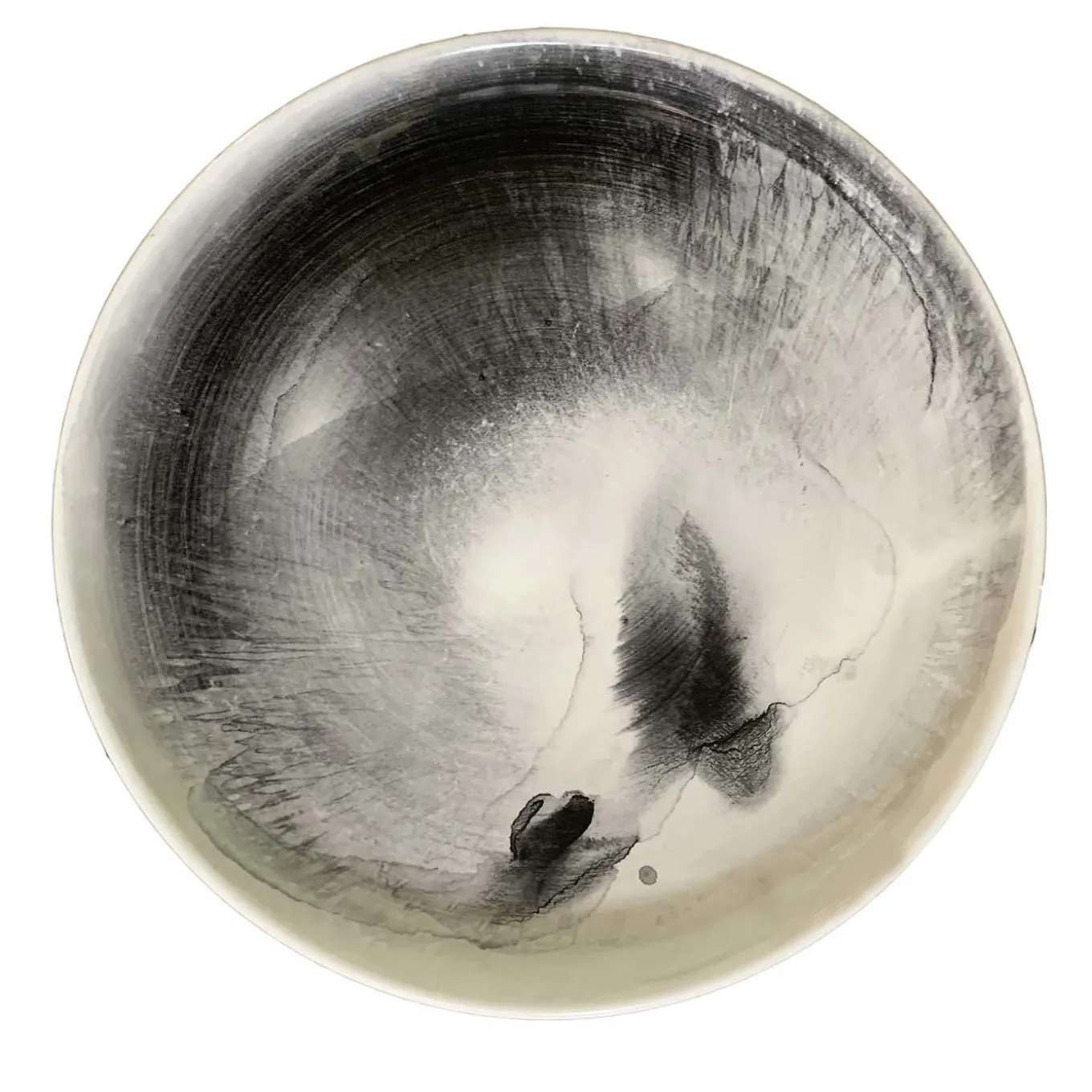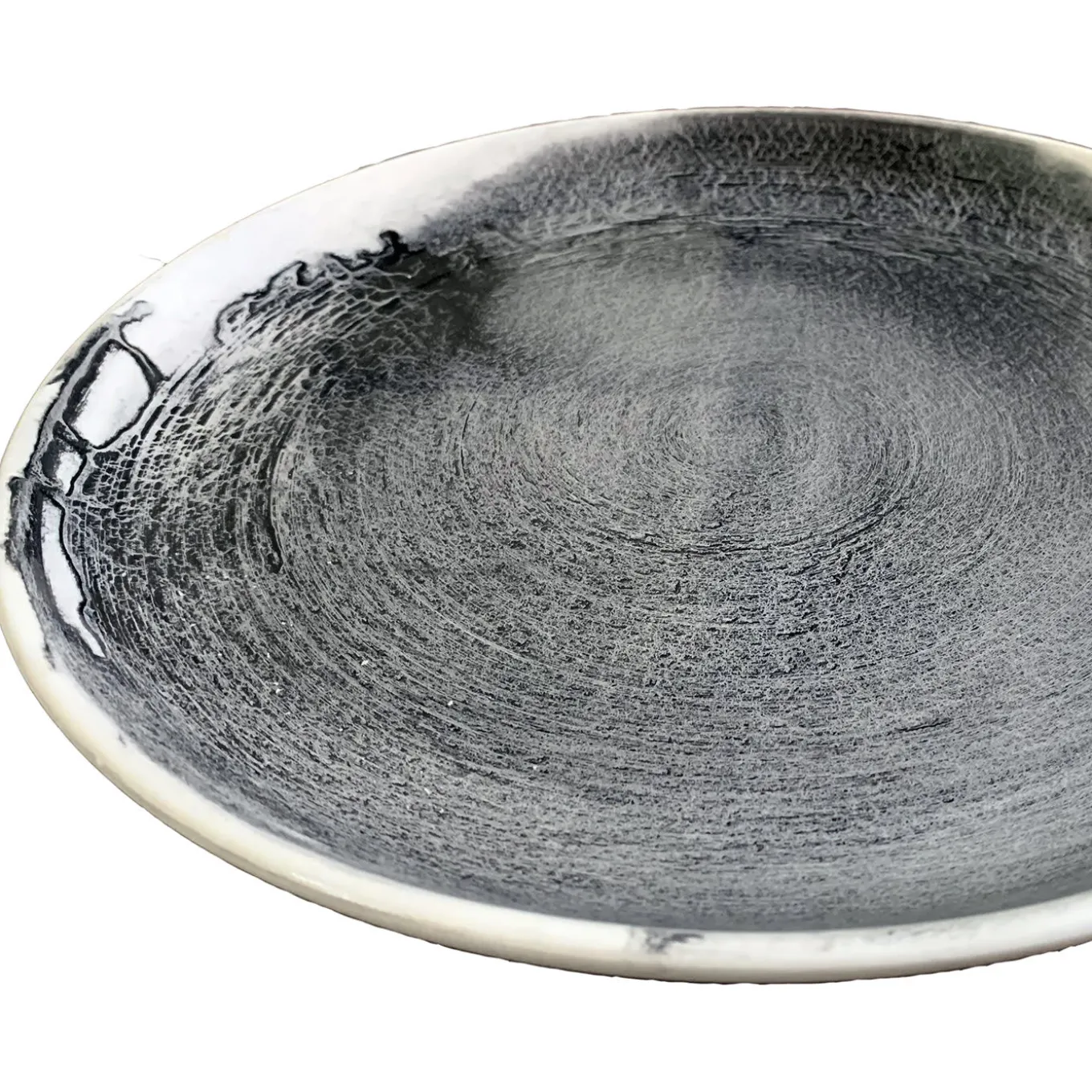Questo splendido piatto da frutta è un oggetto d’arte di forte impatto visivo. Con un’accattivante decorazione in ossido nero dipinta interamente a mano, questo piatto in ceramica sarà un’aggiunta unica agli altri pezzi della collezione, infondendo una console d’ingresso, un tavolo da pranzo o un tavolino da caffè con una sottile raffinatezza.