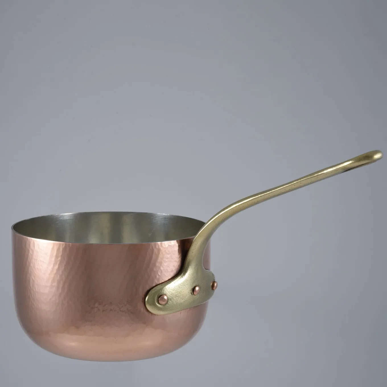 Ideale per cucinare risotti, sughi per la pasta e riduzioni, questa casseruola compatta è realizzata da maestri artigiani. Il coperchio bombato e il contenitore rigonfio sono in rame puro, spesso 2,5 mm, impreziosito da una morbida texture martellata. Il rivestimento interno in argento puro (20 micron) garantisce una cottura sicura e una distribuzione uniforme del calore. Un sottile manico in fusione di ottone completa il design. Chiedere al Concierge la variante adatta ai piani cottura a induzione.