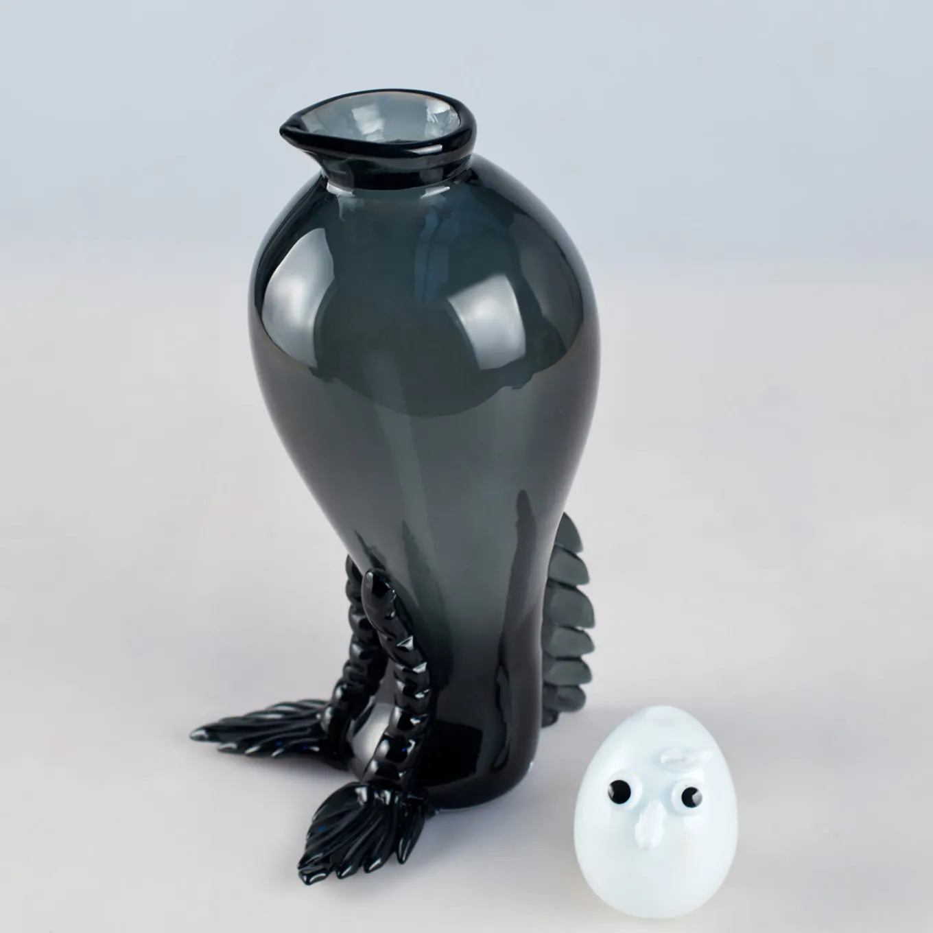 Parte della collezione Strambotti in edizione limitata, questa scultura in vetro ispirata ai piccioni si ispira alle inimitabili sculture di animali in vetro della Murano del 1920. Parte del set Frères Pigeons, il pezzo è realizzato in vetro fumé e poggia su piedini in vetro tagliato. Il pezzo è sormontato da una testa bianca con un’espressione interrogativa. Un vero pezzo da collezione.
