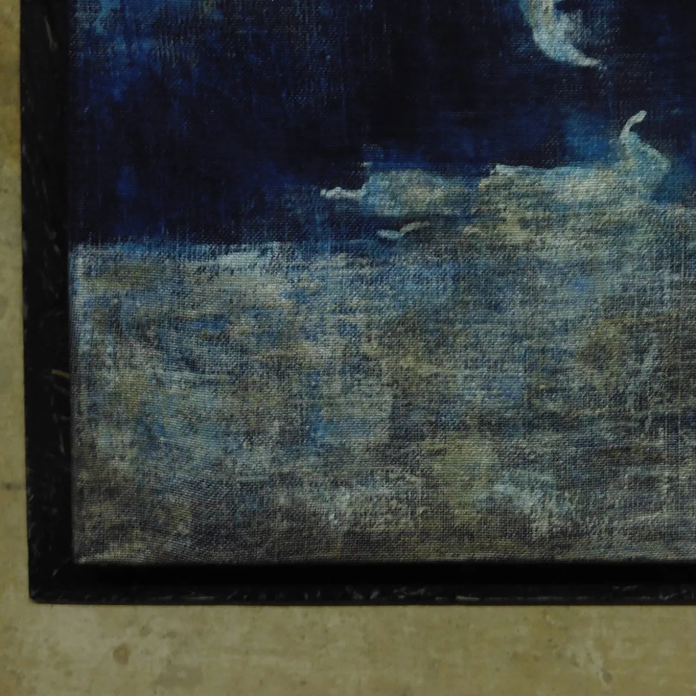 Un dipinto sofisticato e moderno, realizzato con metodi artigianali tradizionali. Questa superba opera d’arte sarà un’aggiunta maestosa a un salotto o a uno studio in stile contemporaneo. Montata su un supporto in legno, presenta una tela di canapa racchiusa in una cornice in legno OSB. Dipinto in modo sublime con uno straordinario gioco di sfumature con vernice blu cobalto, è rifinito con cera d’api e pigmenti naturali per sigillare le tonalità vivaci.