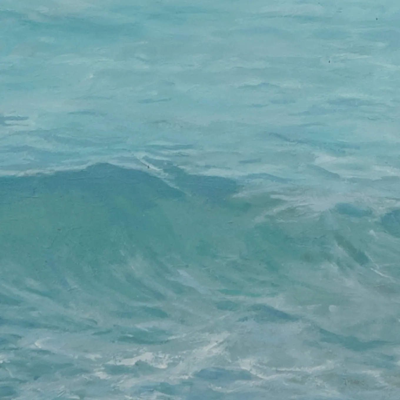 Il rumore del mare che si infrange, l’odore della salsedine, gli spruzzi sulla pelle – i sensi, la vita – si allontanano mentre le onde che respirano si riducono nella nebbia, verso l’ignoto. Decorato con uccelli dorati a 24 carati. Anche i lati di questo splendido trittico sono dorati, in modo da illuminare la parete. Si tratta di un dipinto a olio su pannello di legno.