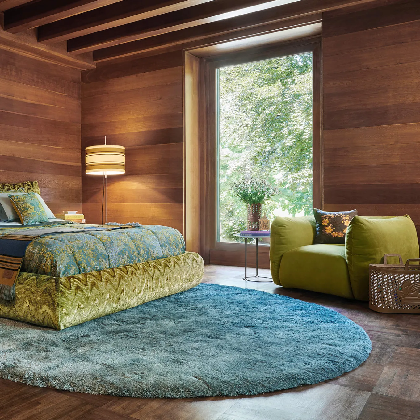 Espressione di un nuovo scenario domestico fatto di colori e tessuti coinvolgenti, Cushy è una linea di mobili composta da divano, poltrona, letto e pouf, tutti caratterizzati da linee morbide e naturali, in grado di trasmettere un senso di accoglienza e intimità. L’imbottitura esalta il fascino della poltrona. Poltrona con struttura in legno massiccio di pioppo e multistrato di pino. Seduta con fasce elastiche, schiuma poliuretanica espansiva ad alta densità a spessore variabile e piuma d’oca.