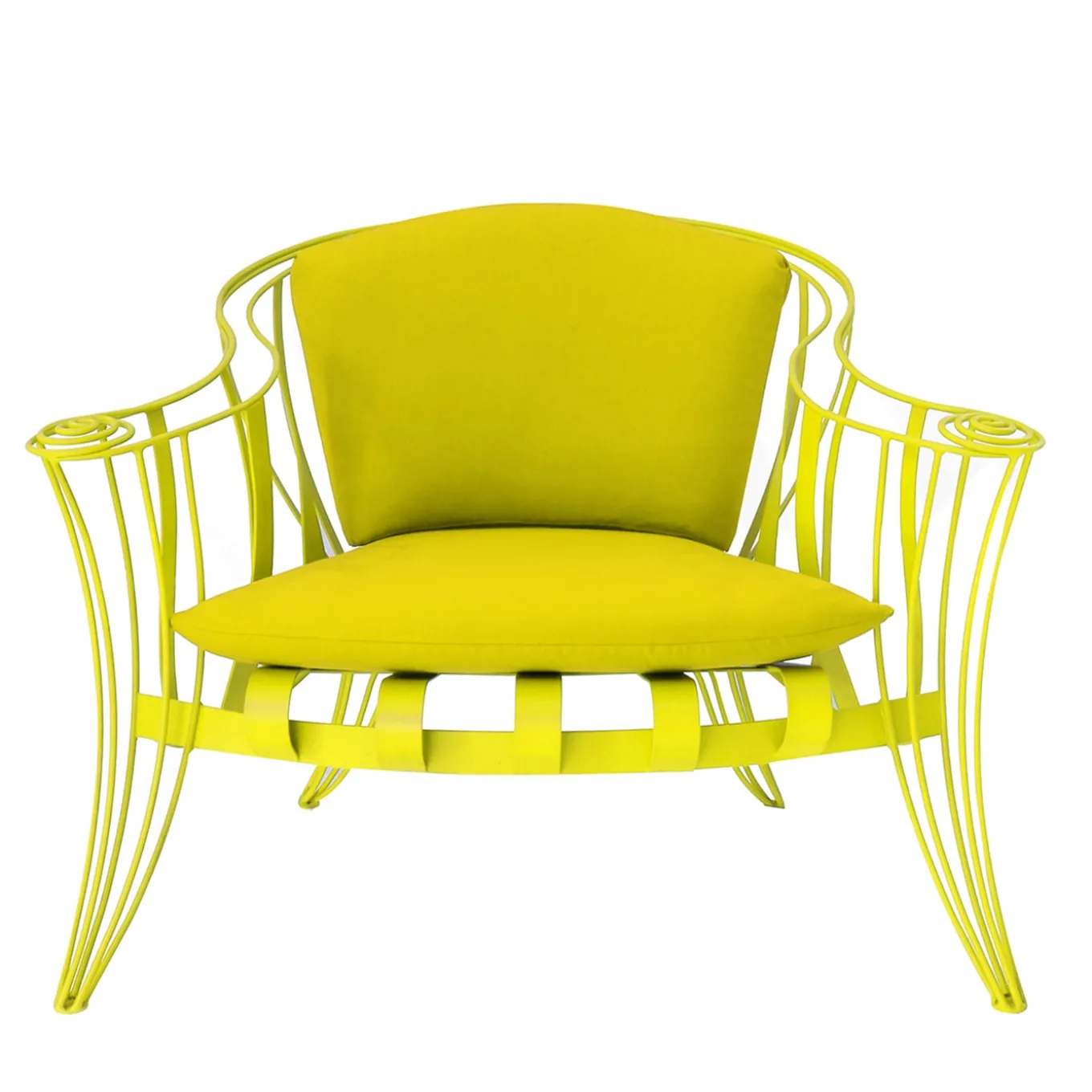 Parte della collezione Opus Garden, questa splendida poltrona da esterno è l’aggiunta ideale a un patio eclettico o a una terrazza contemporanea. Le sue curve sinuose, caratteristiche della collezione Opus, sono state realizzate in ferro piegato a mano e trattato con una finitura gialla antiruggine. Questo pezzo può essere acquistato con o senza i cuscini della seduta e dello schienale; chiedete al Concierge per dettagli e prezzi.