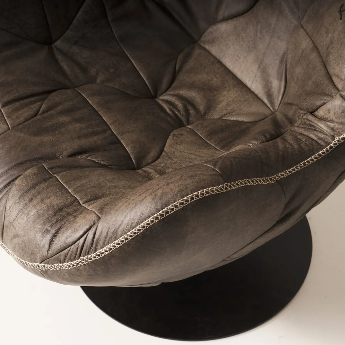 Pelè, omaggio al grande calciatore di fama mondiale, è realizzato con le stesse tecniche degli antichi palloni da calcio. Pelle in crosta, conciata naturalmente, cucita a mano e invecchiata secondo le tecniche degli antichi artigiani toscani del cuoio. La struttura poggia su una base in acciaio traforato a mano con meccanismo girevole, armoniosamente oscillante, per un comfort garantito.