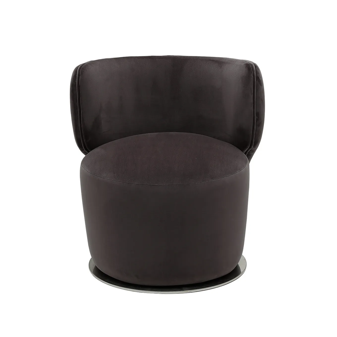 Questo design accogliente è un omaggio all’affascinante armonia dei volumi arrotondati. Con una solida struttura in faggio e abete imbottita per l’85% in poliuretano ad alta densità e per il 15% in fibra di poliestere, questa poltrona invita a concedersi un momento di puro relax appoggiando la schiena allo schienale curvo e avvolgente. Una base metallica girevole (diametro 55 cm) sostiene la seduta cilindrica, le cui caratteristiche strutturali la rendono particolarmente confortevole. Il sistema di sostegno del telaio è costituito da fasce elastomeriche.
