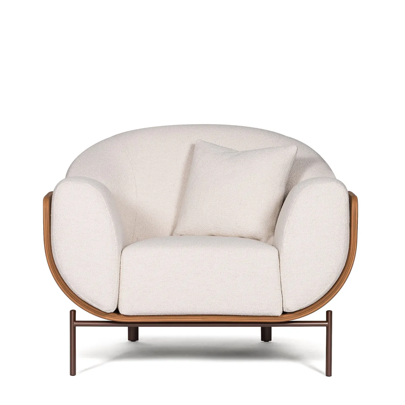 Haima’ incarna l’artigianato italiano con la sua elegante scocca curva ispirata a un tenero abbraccio. Ogni elemento scorre senza soluzione di continuità: dallo schienale ai braccioli, ogni dettaglio è realizzato per garantire il massimo comfort. Il pouf Haima’ completa perfettamente la poltrona, offrendo un relax senza pari. Caratterizzato da scocca in similpelle, cuscini imbottiti e struttura in acciaio verniciato a polvere, questo progetto di Maryam Al Suwaidi è un’armonia di stile e funzionalità.