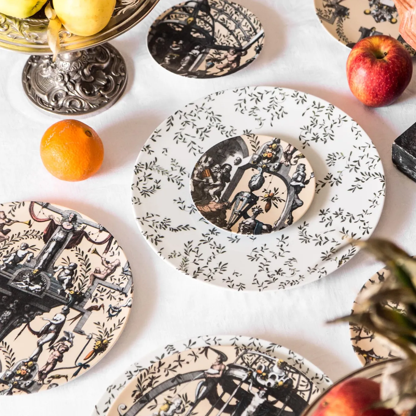 La nuova collezione di porcellane Pompei riporta in auge la decorazione murale grottesca in chiave contemporanea. Disegni antichi vengono ripresi e declinati sui diversi formati della mise en place in modo da creare giochi di sovrapposizioni eleganti e unici. Elementi naturali, figure antropomorfe, gioielli e architetture si fondono per creare storie, decorazioni e geometrie. Questa collezione riesce a essere trasversale, adattandosi sia a tavole regali ed eleganti che ad ambienti più formali.