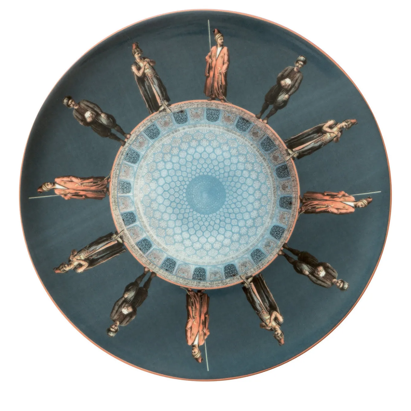 Questo magnifico set di due piatti da dessert sarà un’aggiunta preziosa a qualsiasi casa. I pezzi fanno parte della collezione Costantinopoli, che comprende piatti in porcellana decorati con una combinazione di dettagli astratti e di elementi naturalistici vivaci. In questo caso, il verde bosco dello sfondo è ravvivato da una serie di figurine vestite secondo la tradizione turca, mentre al centro si trova una superba decorazione geometrica ispirata all’architettura bizantina. Questi due pezzi unici possono essere combinati con gli altri 11 modelli per ottenere un set completo per servire il dessert dopo cena.