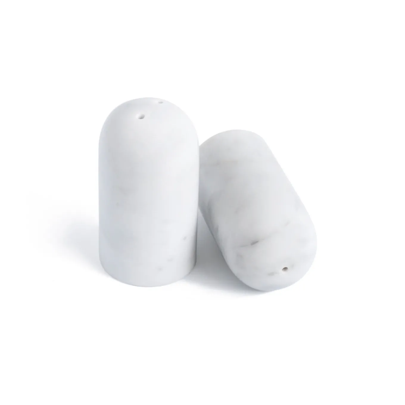 Splendido nella sua allure minimalista, questo set di quattro saliere e pepiere in luminoso marmo bianco di Carrara è una superba idea regalo per gli sposi. La mancanza di ornamenti aggiunti è controbilanciata dalla particolare venatura della pietra preziosa che rende ogni pezzo del tutto unico, aiutata dal fatto che il processo di produzione è completamente manuale. Non lavabile in lavastoviglie, lavare a mano con acqua e sapone naturale.
