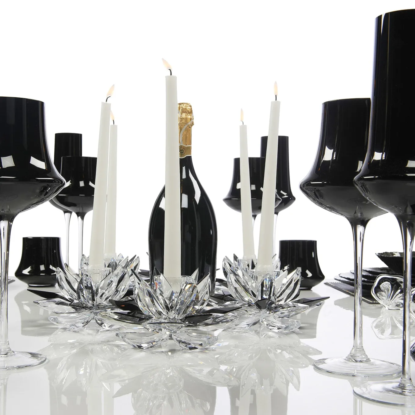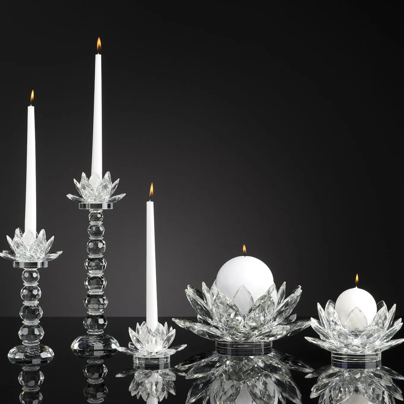 Portacandele in cristallo, ideale per decorare qualsiasi interno, anche per occasioni speciali come matrimoni, eventi o manifestazioni formali.