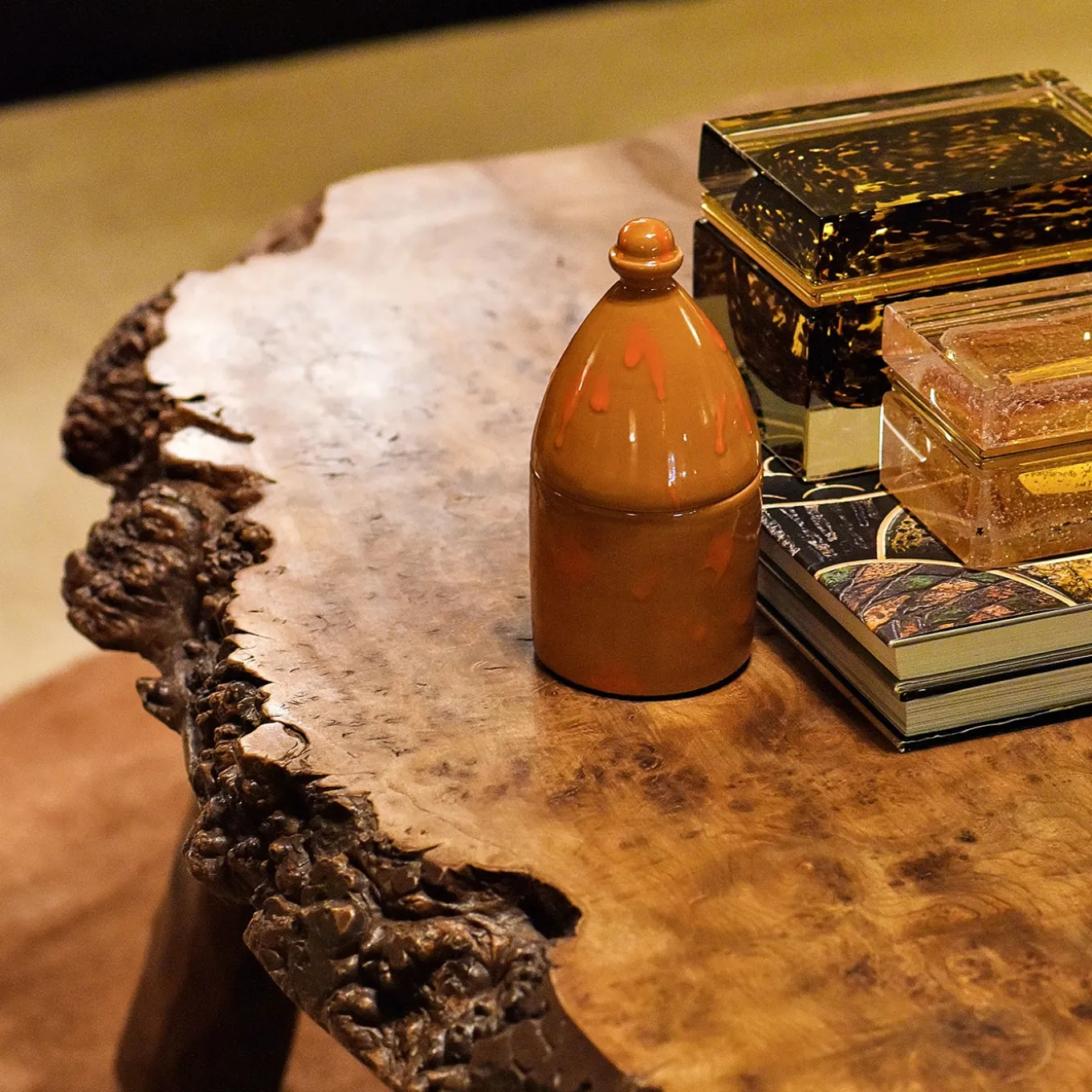 Ispirato alle case tradizionali della Valle d’Itria in Puglia, questo stupendo portacandele vanta una silhouette sinuosa e distintiva realizzata a mano in ceramica dipinta di caramello e arancio. Completa il tutto una candela di cera di soia fatta a mano al profumo di arancia e caramello. Disponibile in altri colori, questo pezzo viene fornito in cartone riciclato e in una scatola di lino grezzo.