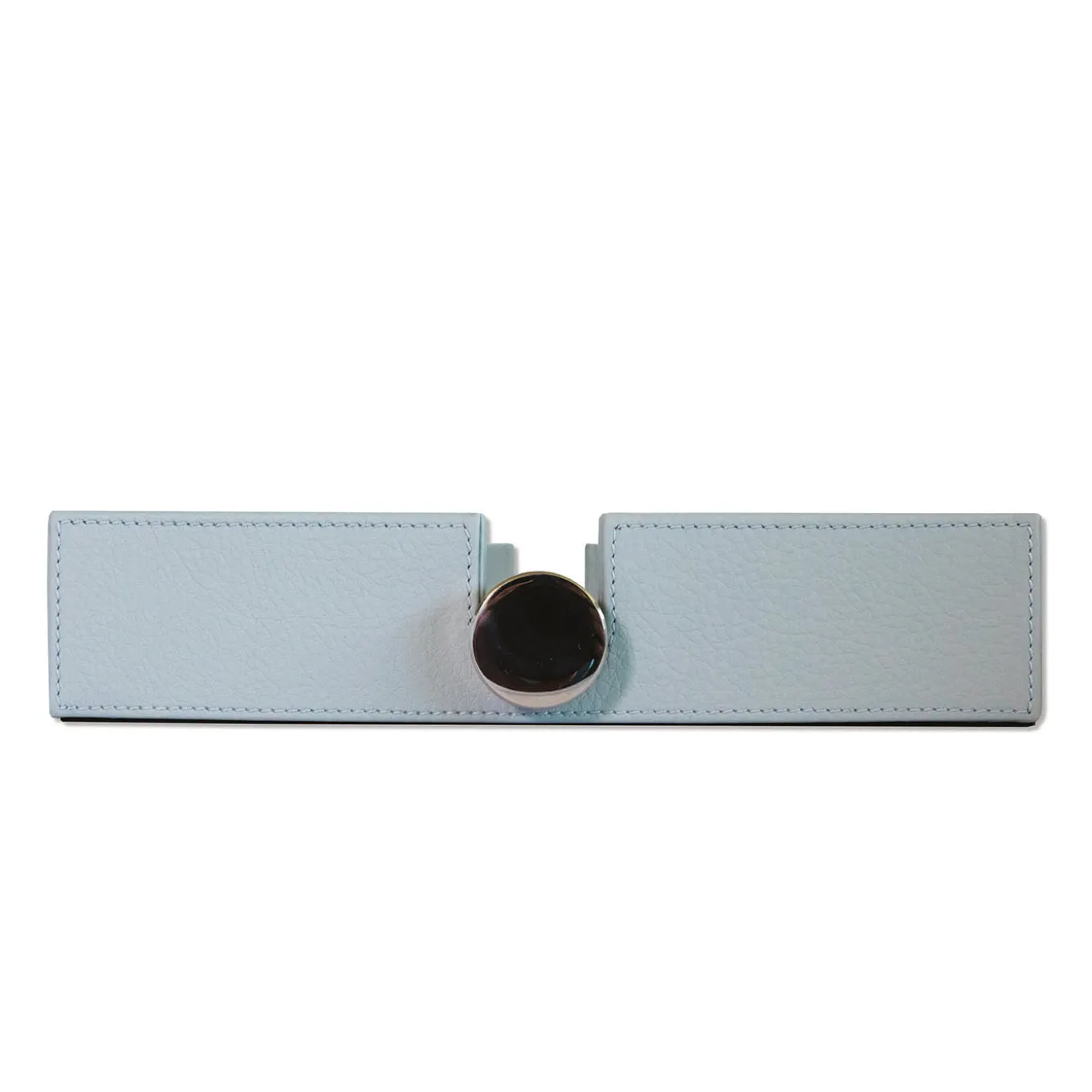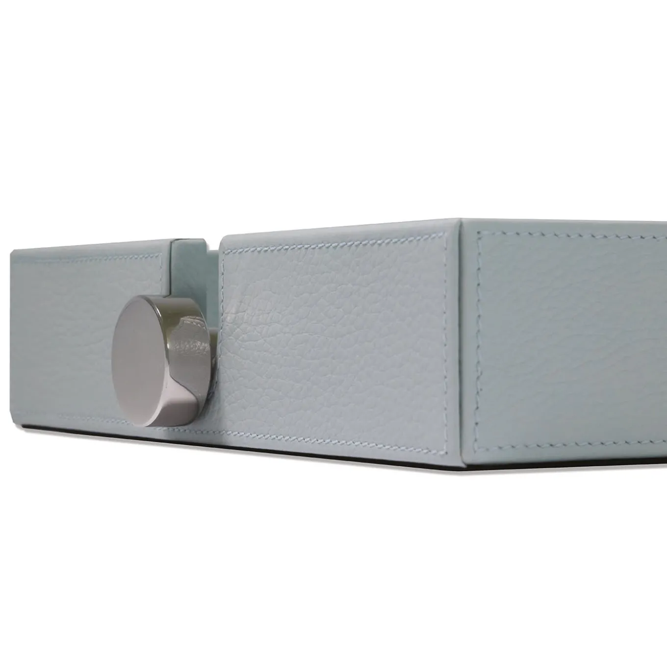 Un’aggiunta sofisticata a una sala da pranzo moderna o contemporanea, questo portatovaglioli è realizzato in legno elegantemente rivestito in pelle a grana morbida blu chiaro. Al centro della scatola aperta, una barra in acciaio inossidabile terrà fermi i tovaglioli per facilitarne la conservazione e l’uso. Disponibile in 13 diversi colori a scelta, consultate il catalogo Artemest.