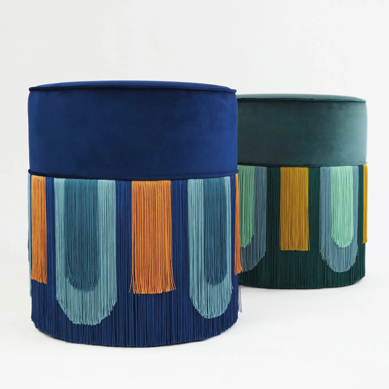 Prendendo spunto dall’eleganza dello stile Art Déco, questo raffinato pouf è l’epitome del retro-chic. La silhouette cilindrica è ravvivata da un dinamico rivestimento in velluto di un intenso verde pavone, accentuato da una cascata di lunghe frange multicolori che aggiungono dinamismo e un accento drammatico a un salotto o a uno studio moderno. Questo pezzo è stato presentato alla vetrina “Living Objects” curata da Artemest al Fuorisalone 2019 durante la Settimana del Design di Milano. Ogni pezzo su misura è timbrato sul fondo della fodera del pouf, firmato, numerato e datato personalmente dalla designer Lorenza Bozzoli. L’autenticità originale di ogni prodotto evidenzia la qualità artigianale e l’arte di un design di lusso dedicato. Ogni pezzo su misura è impresso sul fondo della fodera del pouf e firmato, numerato e datato personalmente dalla designer.
