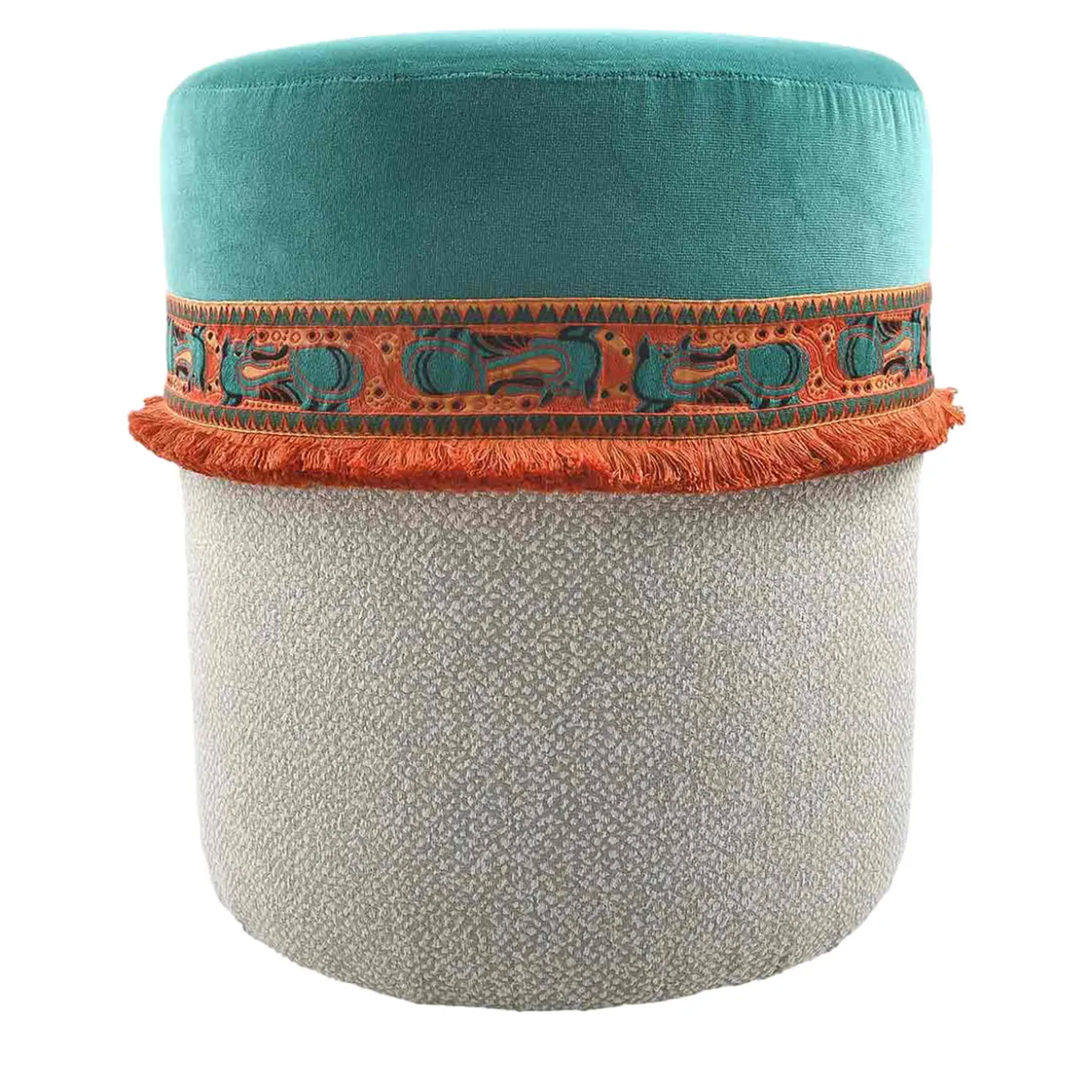 Questo pezzo squisito fonde senza soluzione di continuità la passamaneria classica con il design contemporaneo, presentando splendide variazioni ispirate alla vivacità degli anni ’70, tra cui l’accattivante motivo del drago orientale. La sua struttura raffinata e leggera assicura comfort e stile, mentre l’uso di tessuti di alta qualità celebra l’eccellenza sartoriale. Ogni pouf è progettato con cura e dotato di imbottitura anallergica e di una comoda cerniera. Abbracciate l’essenza dell’eleganza moderna e dell’artigianato artistico con questo pezzo in edizione limitata, destinato a imporsi in qualsiasi arredamento.