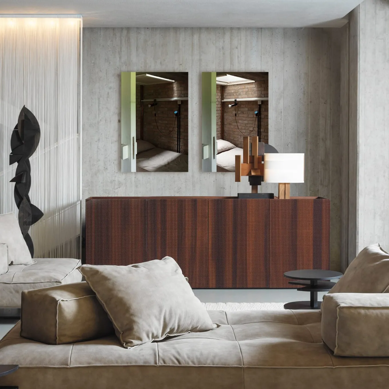 Questo lavoro fa parte del progetto Casestudio, che ci porta all’interno degli studi di alcuni dei più noti designer attraverso l’obiettivo del fotografo. Con il suo sguardo sensibile e riflessivo, il lavoro di Capuano può aiutare a individuare ciò che è davanti ai nostri occhi ma che spesso è irriconoscibile, ponendo lo spettatore nella condizione di osservatore privilegiato. Questa è una delle opere di De Carlo. Diptic composta da due fotografie. Edizione limitata a sette esemplari. La cornice non è inclusa.