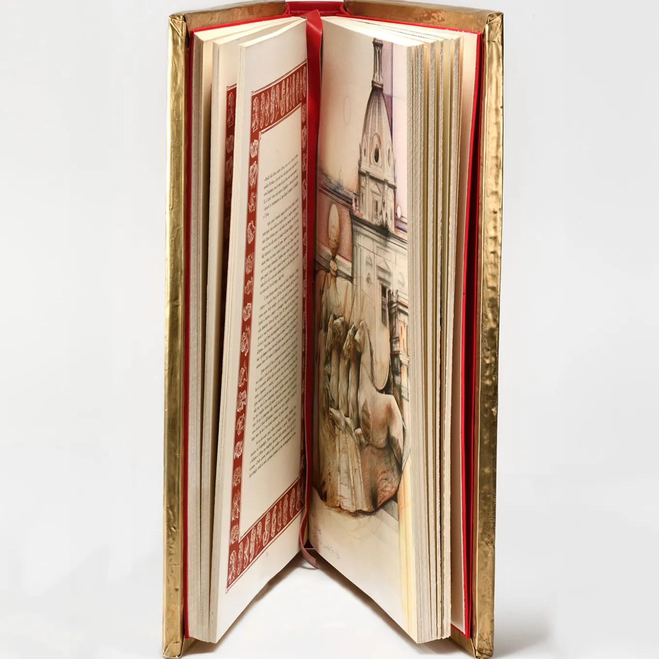 Questo libro di 234 pagine fa parte di una serie esclusiva di 1999 volumi numerati, interamente realizzati a mano e stampati su carta da 220 gr/mq. La rilegatura è eseguita a mano con pelle tinta in rosso e la migliore seta italiana. Le due copertine sono in pelle con un bassorilievo centrale fatto a mano in rame con finitura dorata ed è ornato da 75 incisioni e 15 litografie raffiguranti la città.